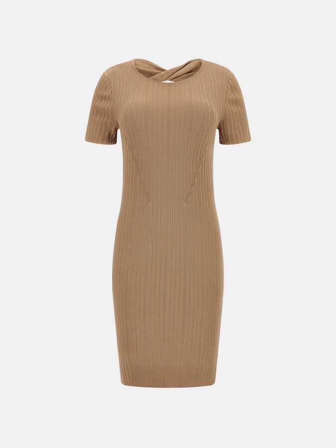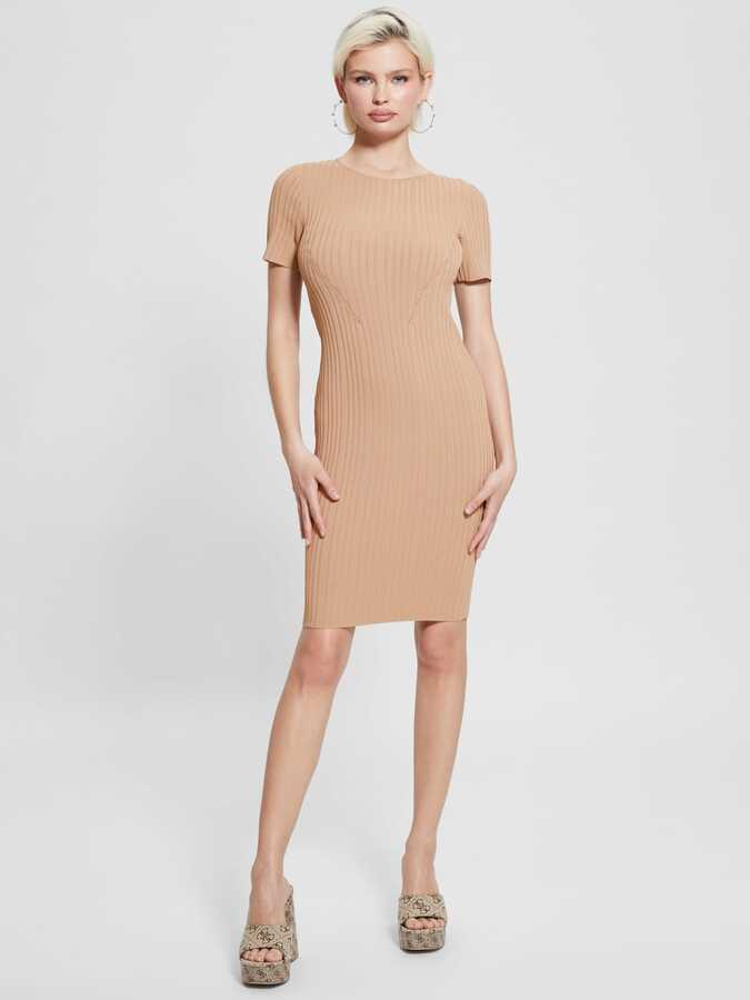 Bodycon Kadın Triko Elbise-Camel