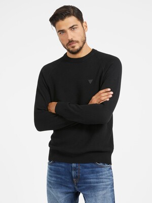Erkek Bisikilet Yaka Yün Karışımı Kazak - Siyah