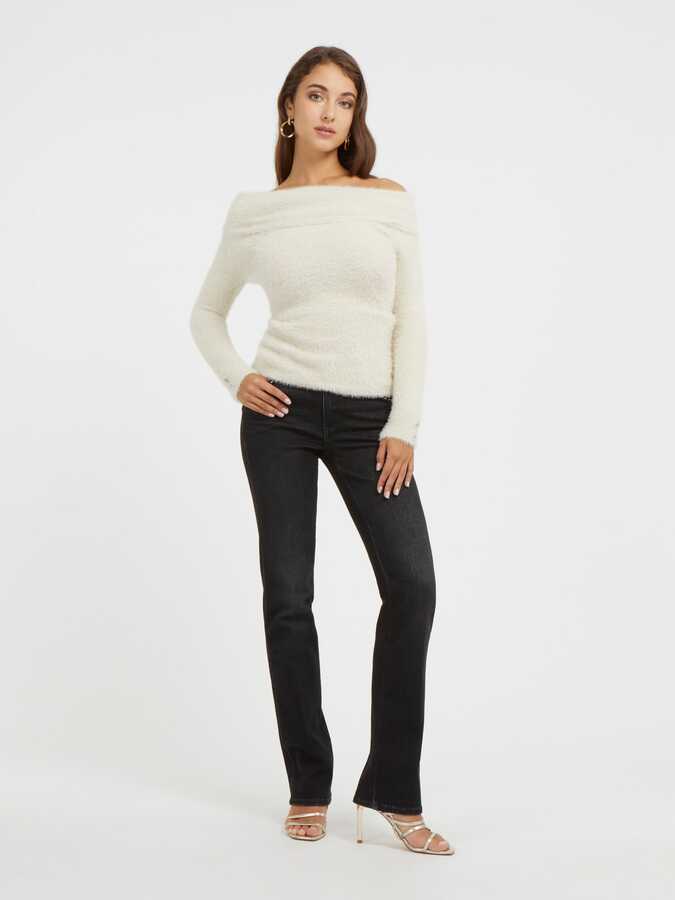 Kadın Düşük Omuzlu Kazak - Beyaz