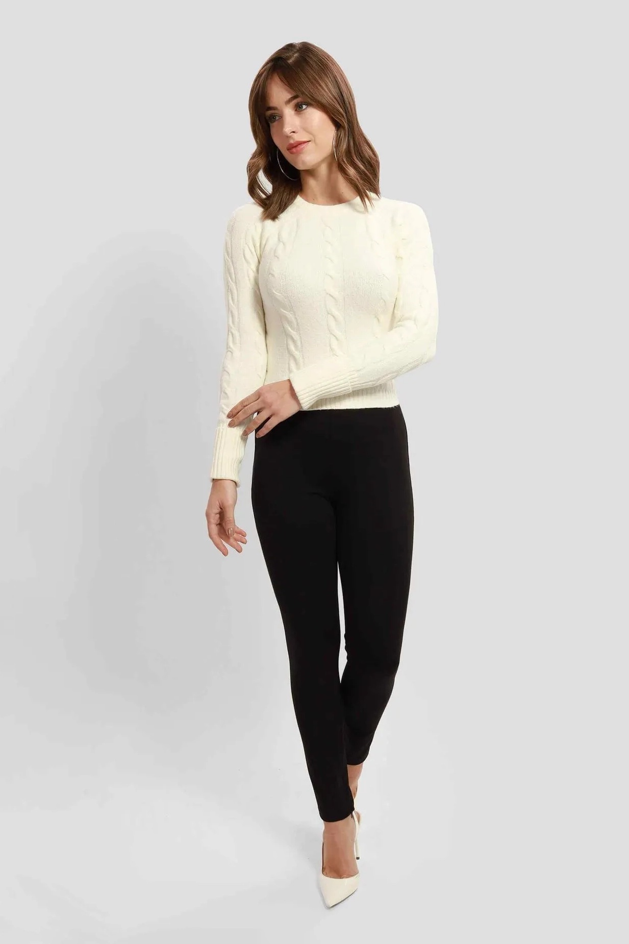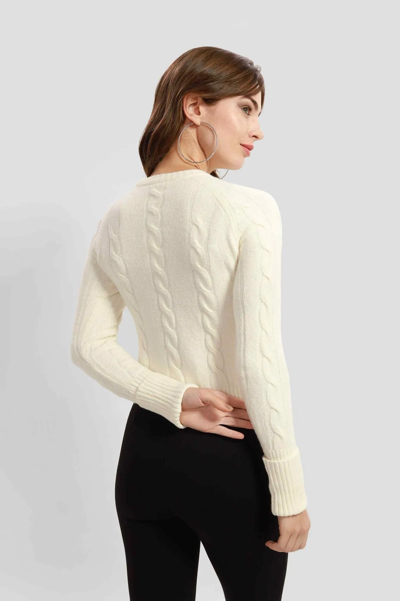 Kadın Halat Örgü Kazak - Ekru