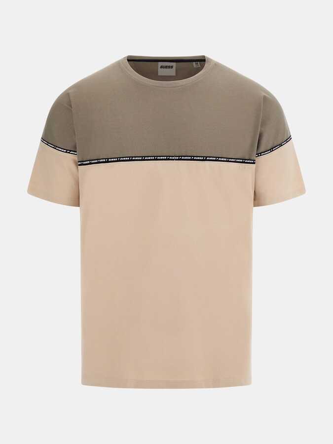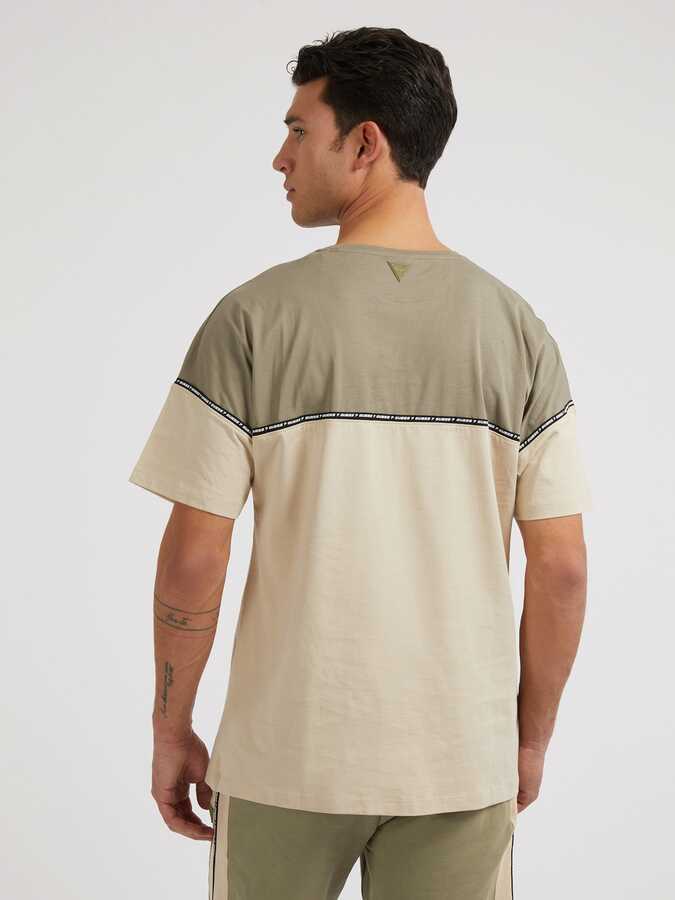 Logo Şeritli Erkek Tişört-Bej-Haki