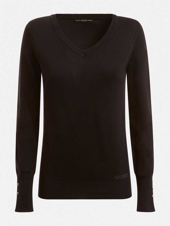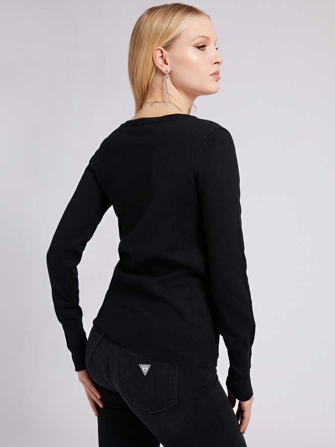 V Yakalı Kadın Kazak-Siyah