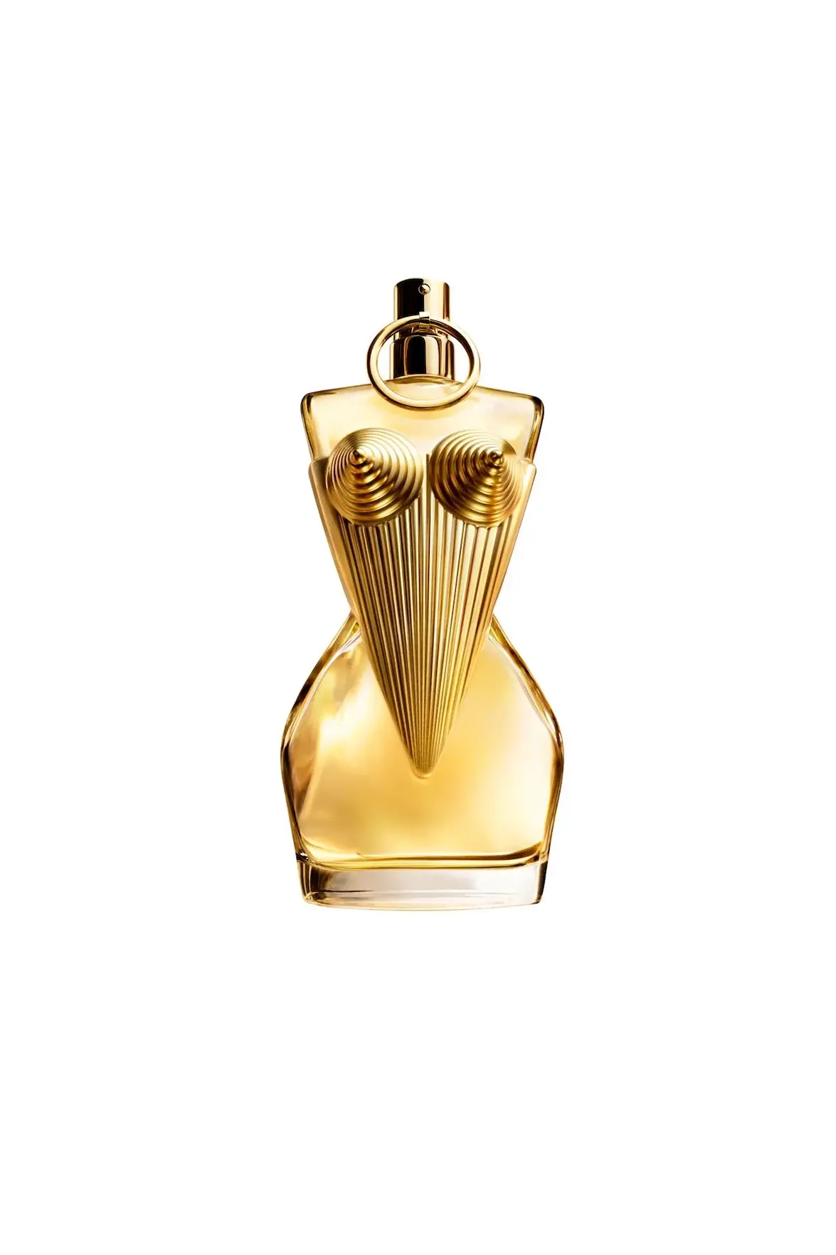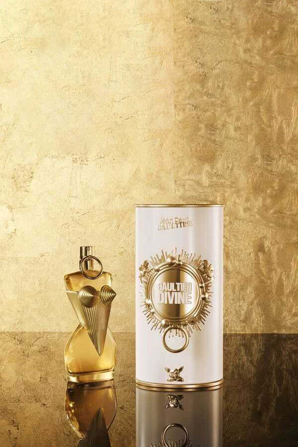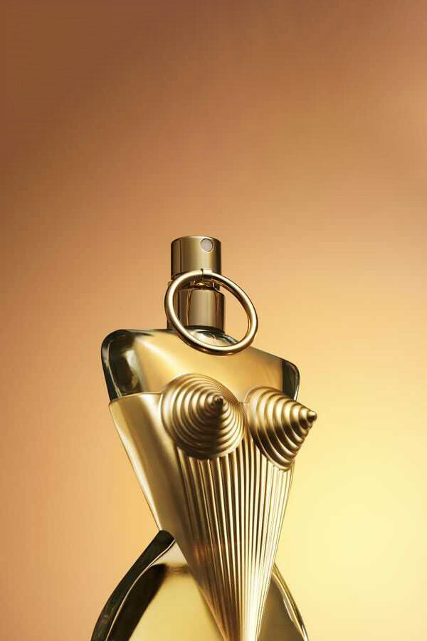 İkonik Jean Paul Gaultier korsesinin yeni bir versiyonu. Paha biçilmez parfümün, altın yansımalı cömert kıvramlarla bezeli yeniden icat edilmiş konik korsede vücut bulması.
