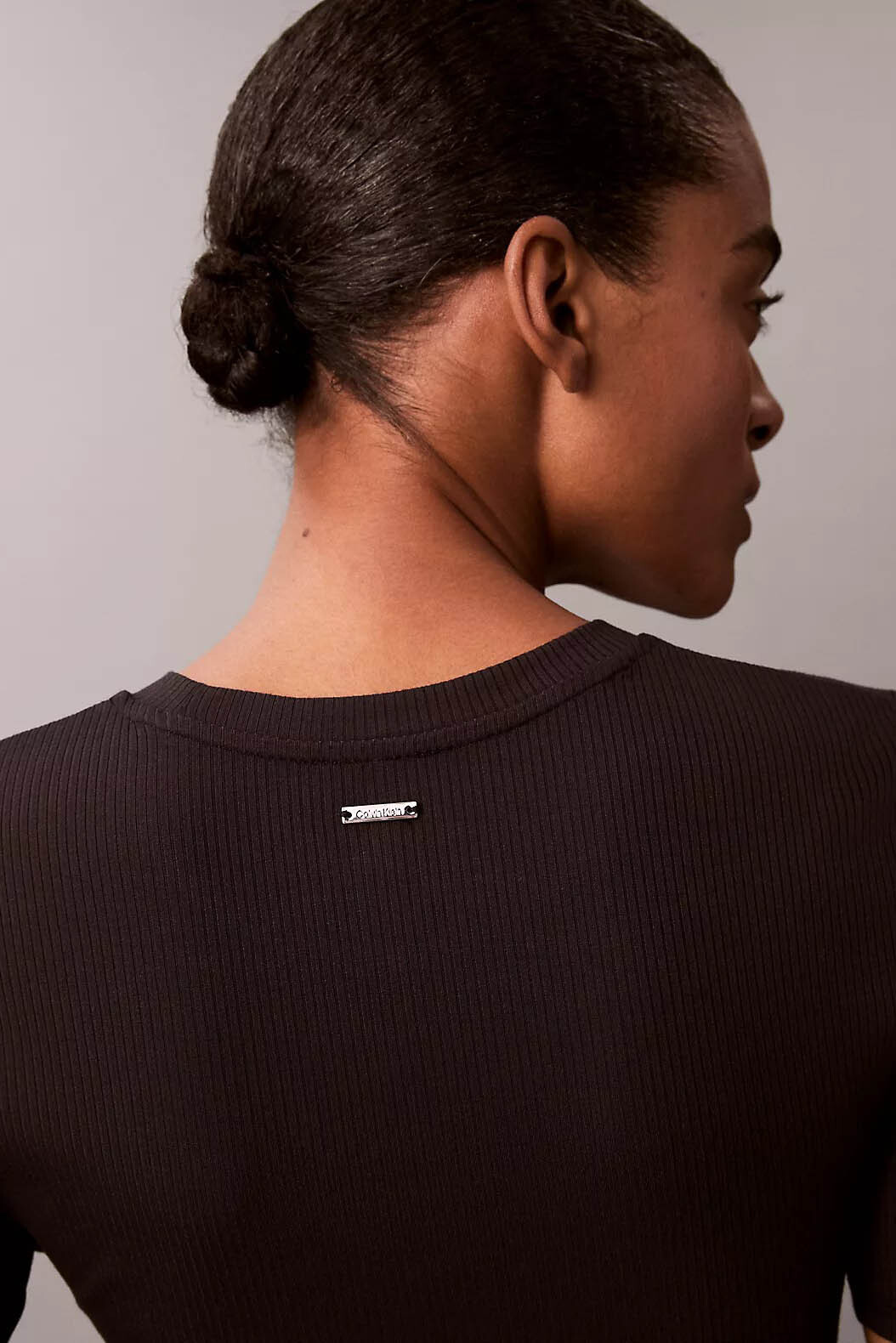 İnce fitilli (ribanalı) dokusu tasarıma modern bir derinlik katarken, tam kalıp (tam) kesimi ve klasik bisiklet yakasıyla zamansız bir silüet çizer. Arka yaka panelinde yer alan minimal metal marka plaketi, tasarıma sofistike bir imza dokunuşu kazandırır. Astarsız ve fermuarsız yapısıyla sadeleşen bu t-shirt, 53 cm uzunluğuyla modern bir form sunarak her türlü alt grup parçasıyla mükemmel uyum yakalar.