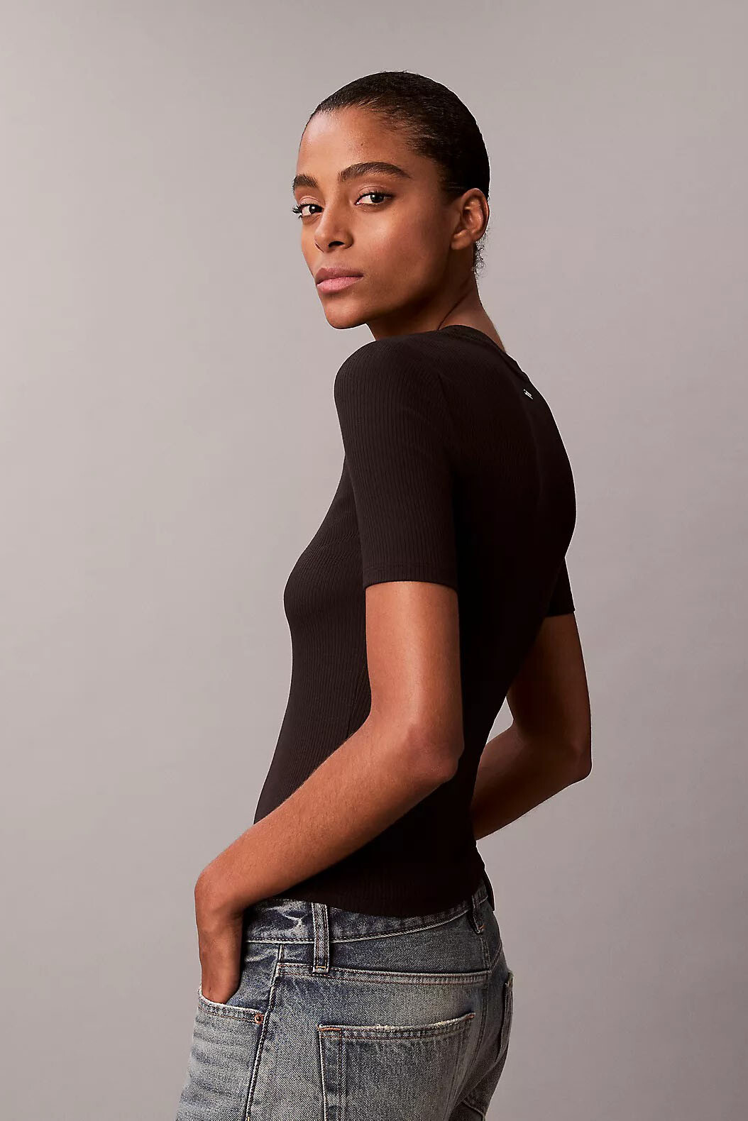 Yumuşak dokusu ve minimalist tasarımıyla günlük stilin kilit parçası olan bu ribana t-shirt, gardırobunuzun en konforlu "essential" parçalarından biri olmaya adaydır. %91 modal ve %9 elastan karışımından oluşan yüksek kaliteli kumaşı, ipeksi bir dokunuş sunarken esnek yapısıyla vücudunuzu nazikçe sarar. Siyahın zamansız asaletini taşıyan bu model, hem tek başına hem de ceket veya blazer içlerinde rafine bir görünüm sergiler.