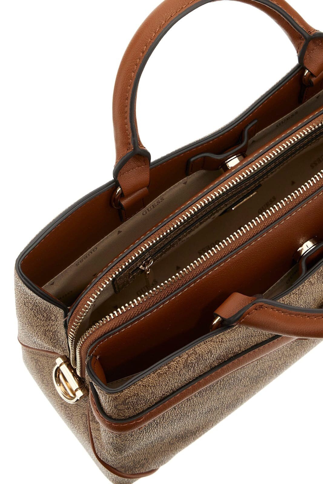 Zarif ve yapılandırılmış formuyla bu el çantası, her ortama uyum sağlayan zamansız bir şıklık sunar. Göz alıcı monogram deseni, kontrast renkli biyeler ve şık metal logosuyla dikkat çekerken, %100 poliüretan malzemesi dayanıklı bir kullanım vadeder. İç kısmındaki fermuarlı merkezi bölme ve dışındaki fermuarlı cep, eşyalarınızı düzenli bir şekilde saklamanız için fonksiyonel çözümler sunar.