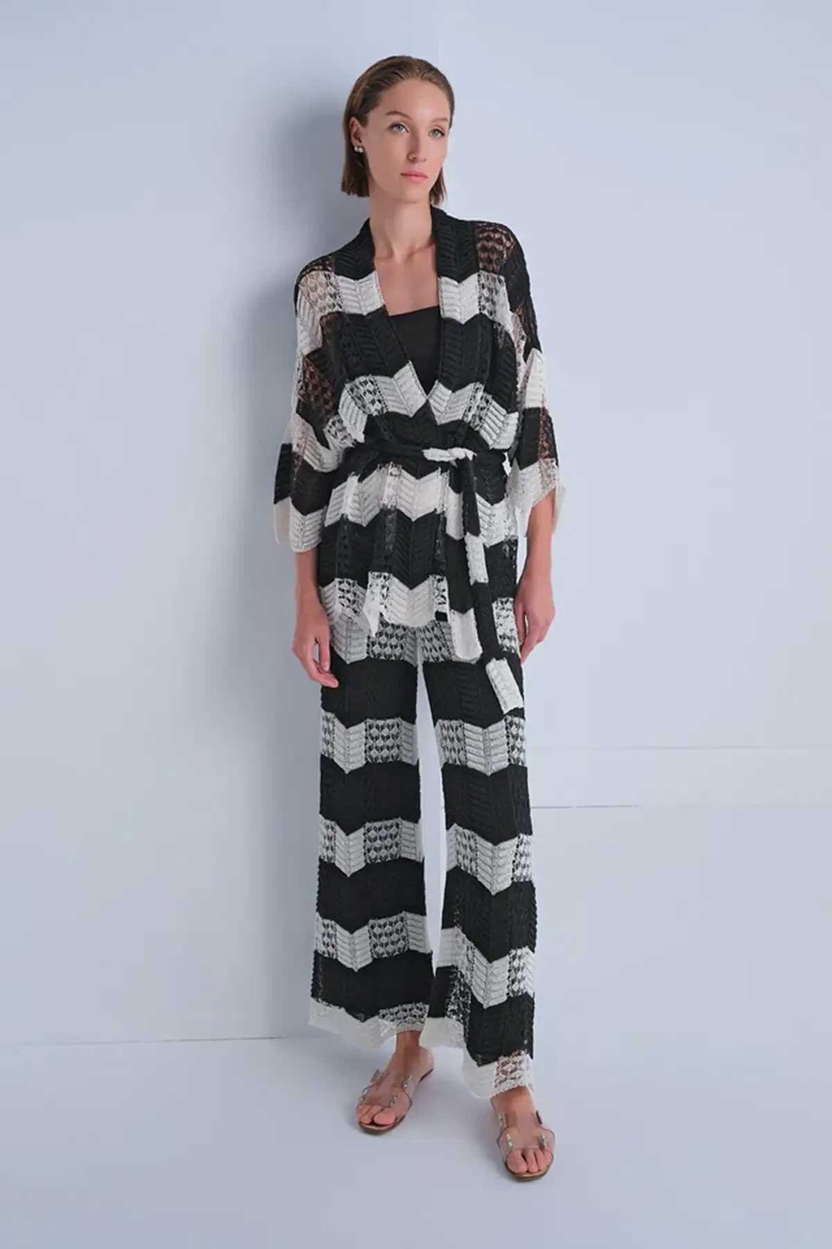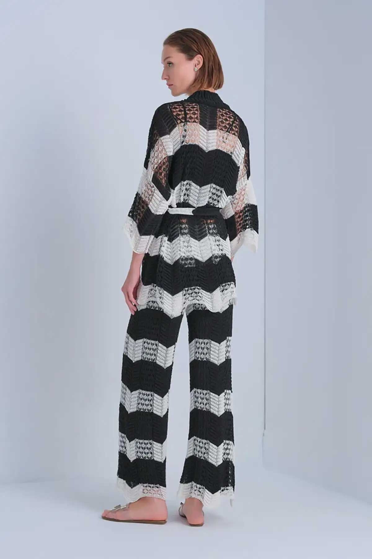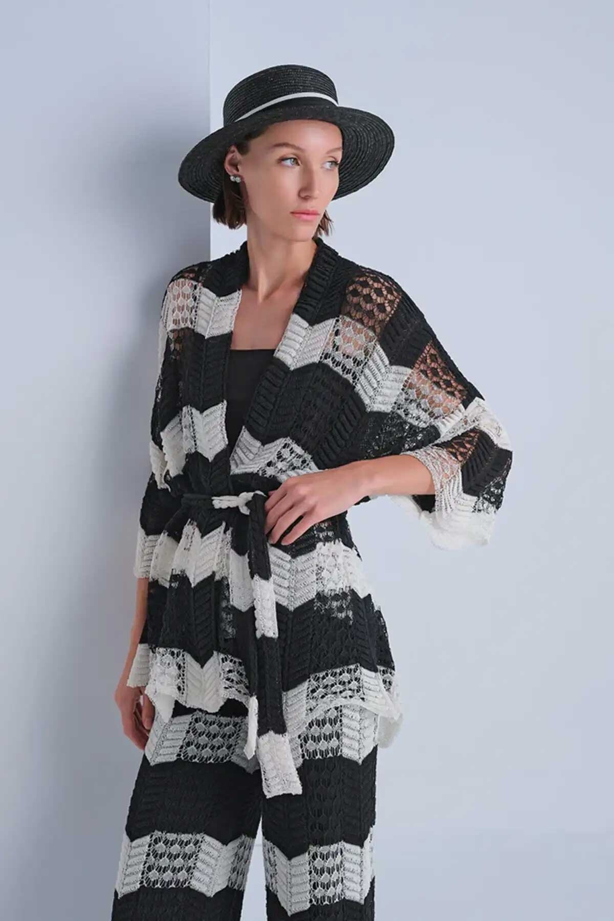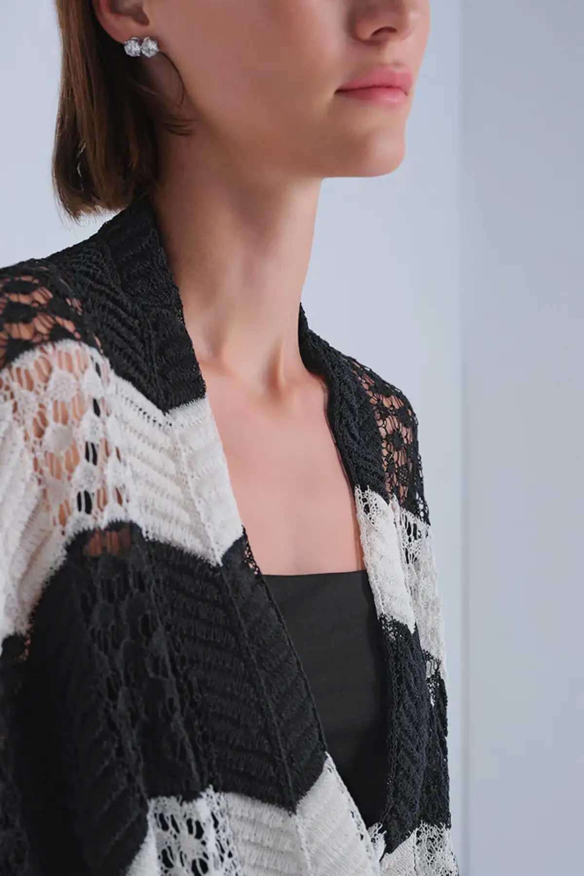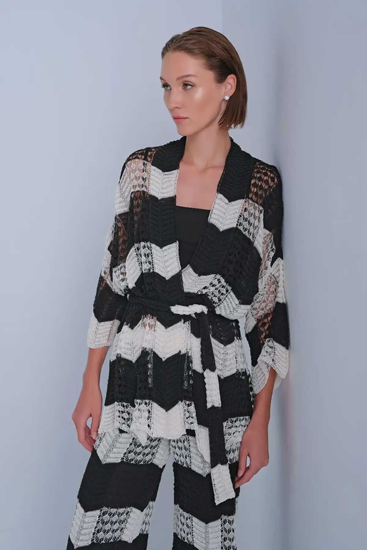 Kadın Ajurlu Kuşaklı Kimono Hırka - Mix