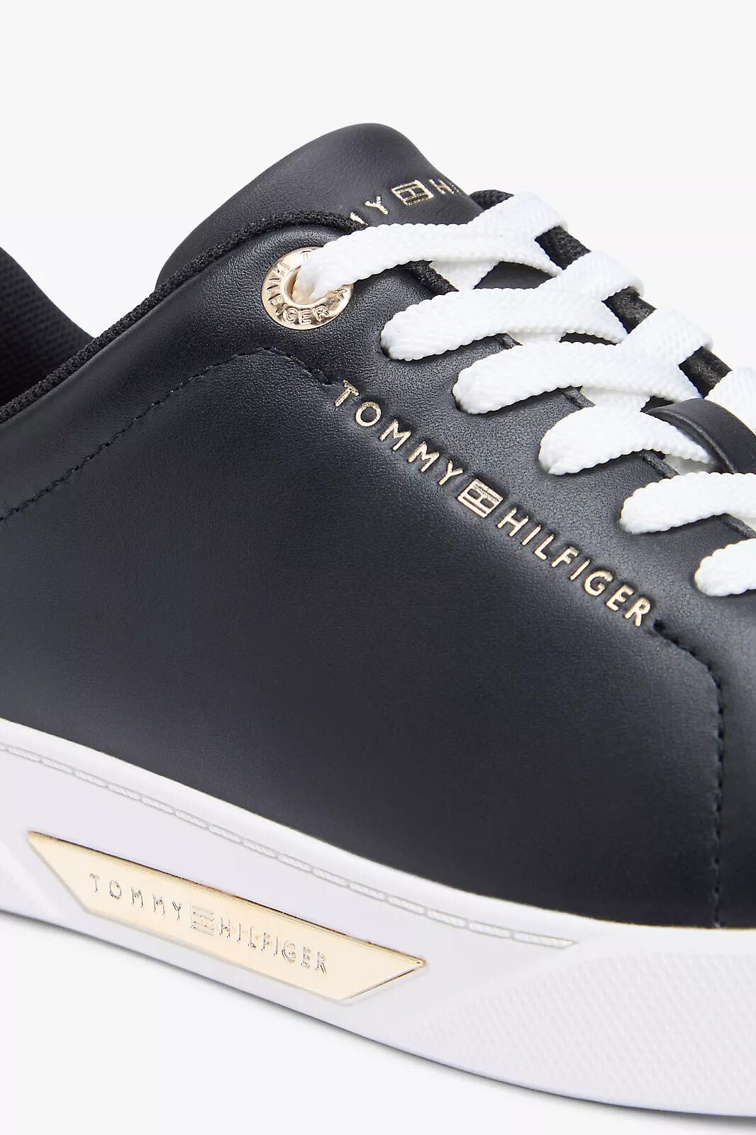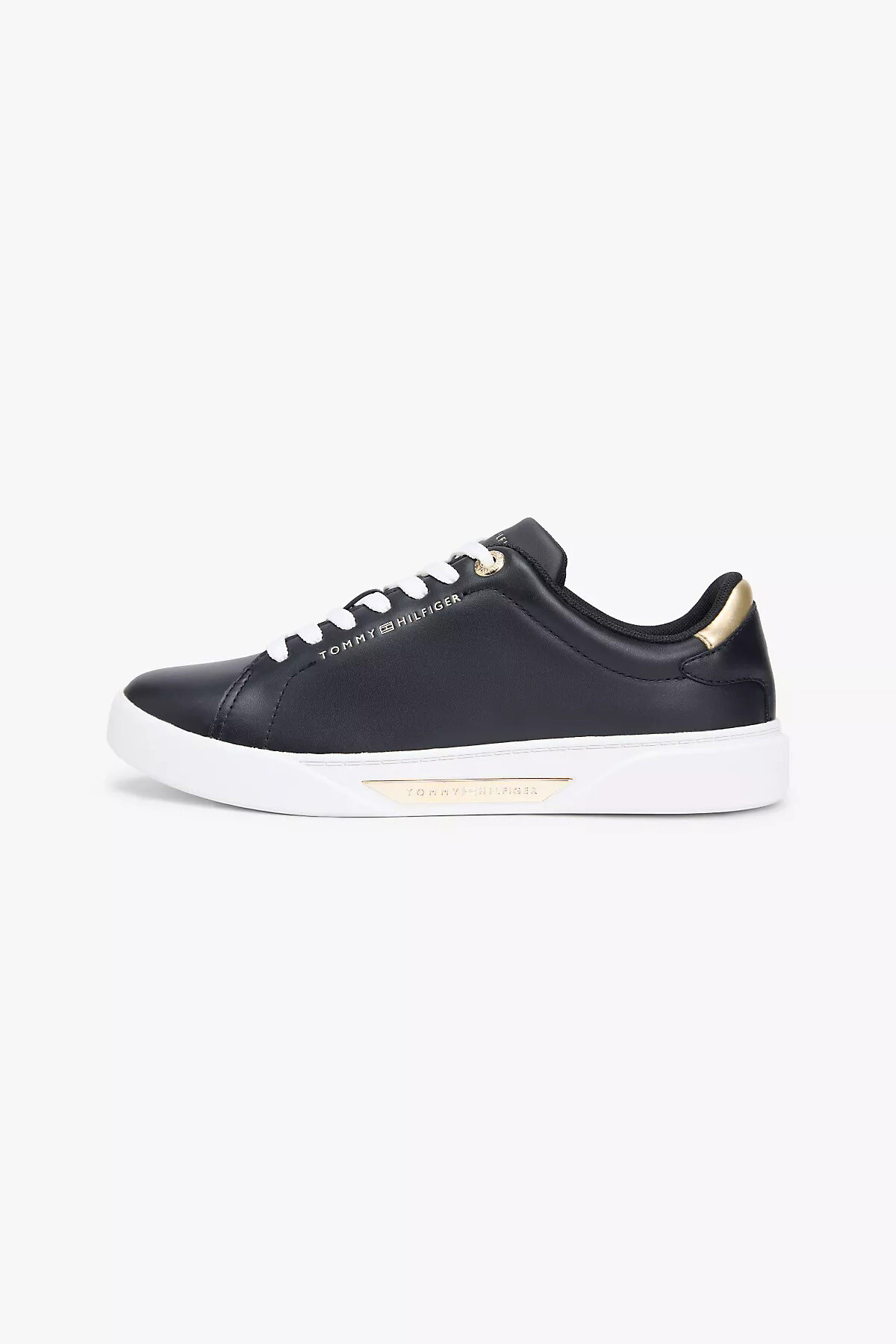 Detay: Altın renkli topuk şeridi, taban plakası ve yan yazı detayı