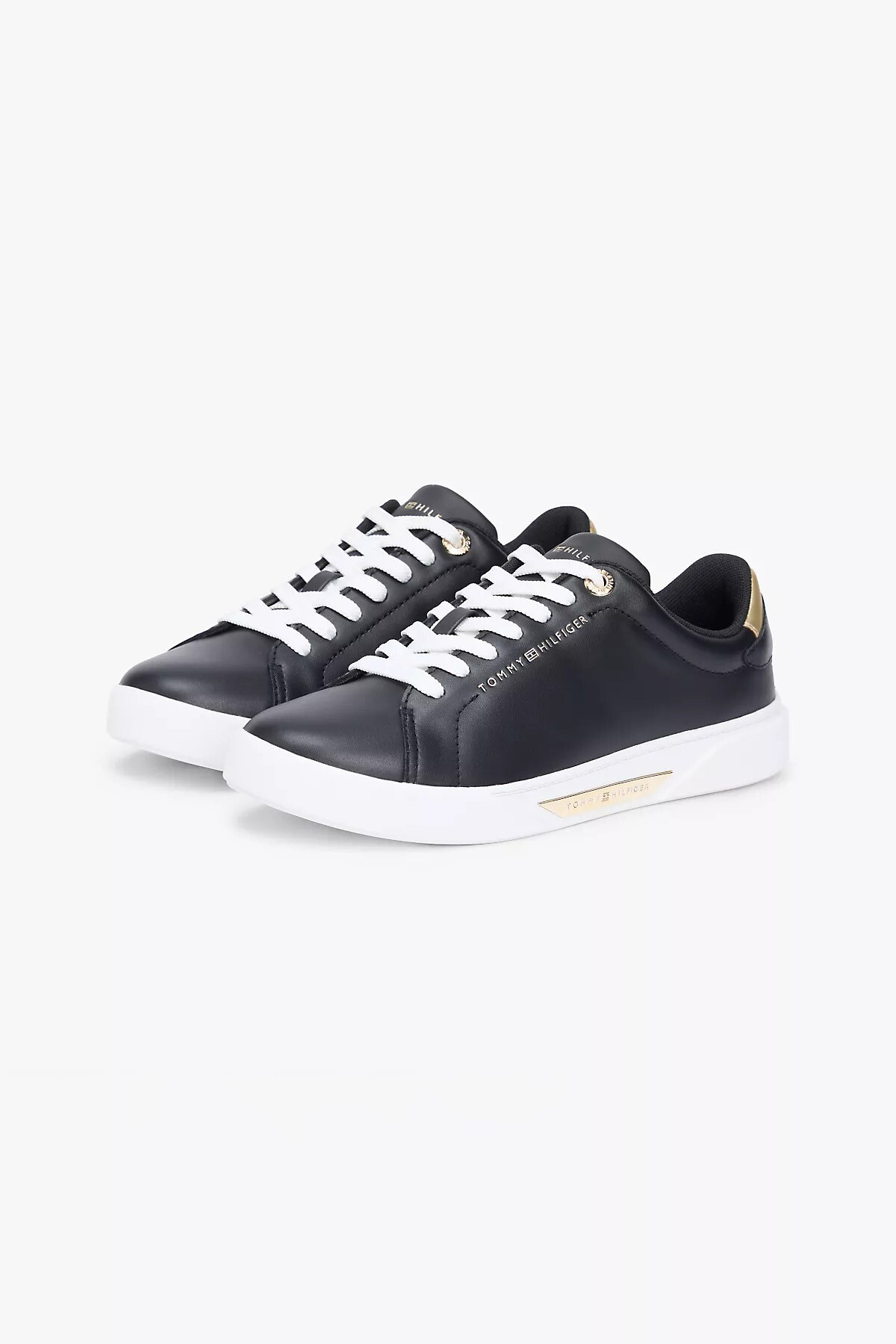 %100 Nappa derinin sunduğu birinci sınıf yumuşaklığı siyah rengin zamansız asaletiyle buluşturan bu sneaker, günlük şıklığınızı lüks detaylarla zirveye taşır. Siyah deri yüzey ile güçlü bir kontrast oluşturan beyaz taban ve bağcıklar tasarıma dinamik bir hava katarken; topukta, yan kısımda ve taban kenarında kullanılan metalik altın aksesuarlar şık bir ışıltı sağlar. En üstteki altın renkli kuşgözü detayı ve yan taraftaki zarif yazı işlemesi, klasik kort silüetini modern ve feminen bir çizgiye taşır.