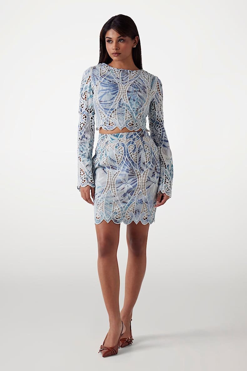 Kadın Anastasia Dantel Crop Üst - Mavi