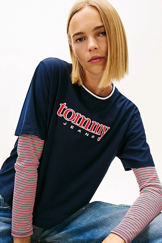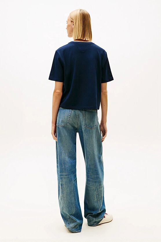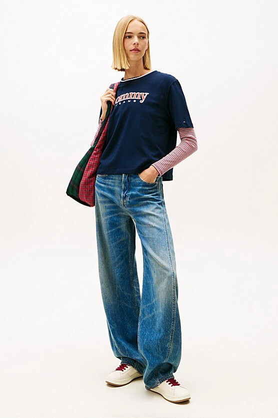 %100 pamuklu yumuşak dokusuyla cildinize gün boyu nefes aldıran bu tişört, boxy kesim formuyla modern ve ferah bir stil sunar. Göğüs kısmında yer alan dikişli ve dokulu aplike tipografik logo, kolejli estetiğini yansıtan nostaljik bir hava katar. Bisiklet yaka etrafındaki ince kontrast şerit detayı, sportif görünümü zarifçe çerçevelerken tasarıma dinamik bir dokunuş ekler. Vücuda oturmayan geniş kalıbı ve bel hizasında biten boyu, hareket özgürlüğünü desteklerken stilinize genç ve enerjik bir karakter kazandırır.