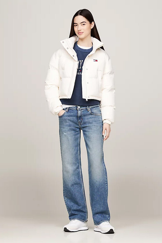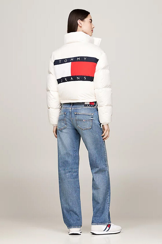 Kadın Arka Grafik Logolu Alaska Down Puffer Mont - Beyaz