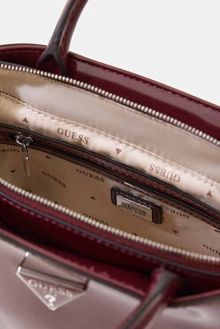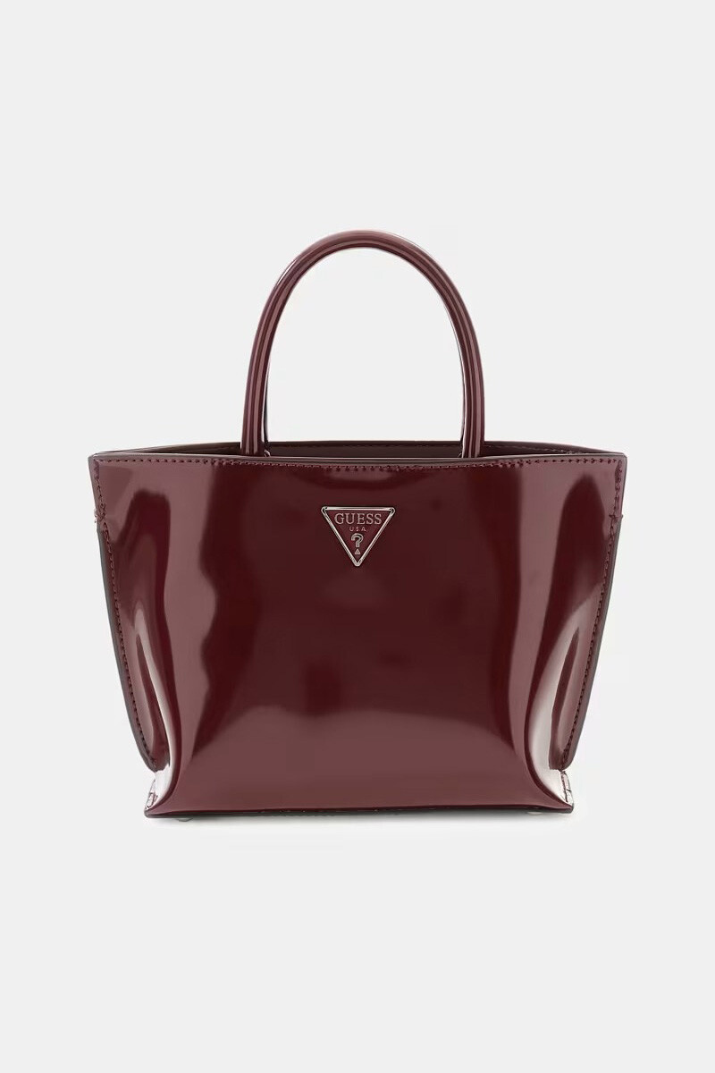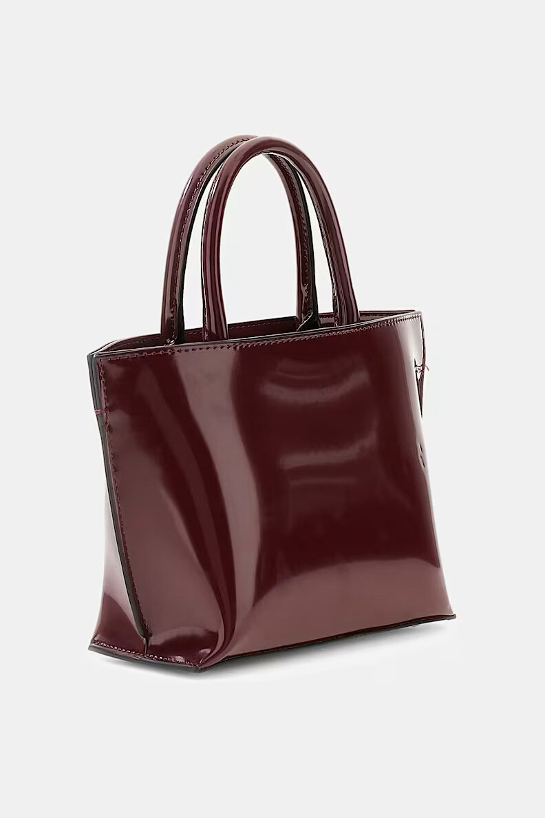 Bordo renginin derin ve asil tonunu, ışığı yansıtan parlak yüzey dokusuyla buluşturan Arnela tote çanta, minimalizmin en çarpıcı halini yansıtıyor. %100 poliüretan malzemeden üretilen, net geometrik çizgilere sahip bu mini tote; sert kalıplı yapısı ve ön yüzdeki gümüş tonlu üçgen metal detayla modern bir bütünlük sağlıyor. Yaklaşık 9 cm uzunluğundaki çift el sapı ile zarif bir el çantası olarak kullanılabilirken, yaklaşık 56 cm uzunluğundaki ayarlanabilir ve çıkarılabilir askısı sayesinde çapraz çanta konforuna dönüşebiliyor. Üstten fermuarlı ana bölmesi, içerisinde yer alan fermuarlı iç cebi ve logolu astarı, günlük temel ihtiyaçlarınız için şık ve güvenli bir alan sunuyor.