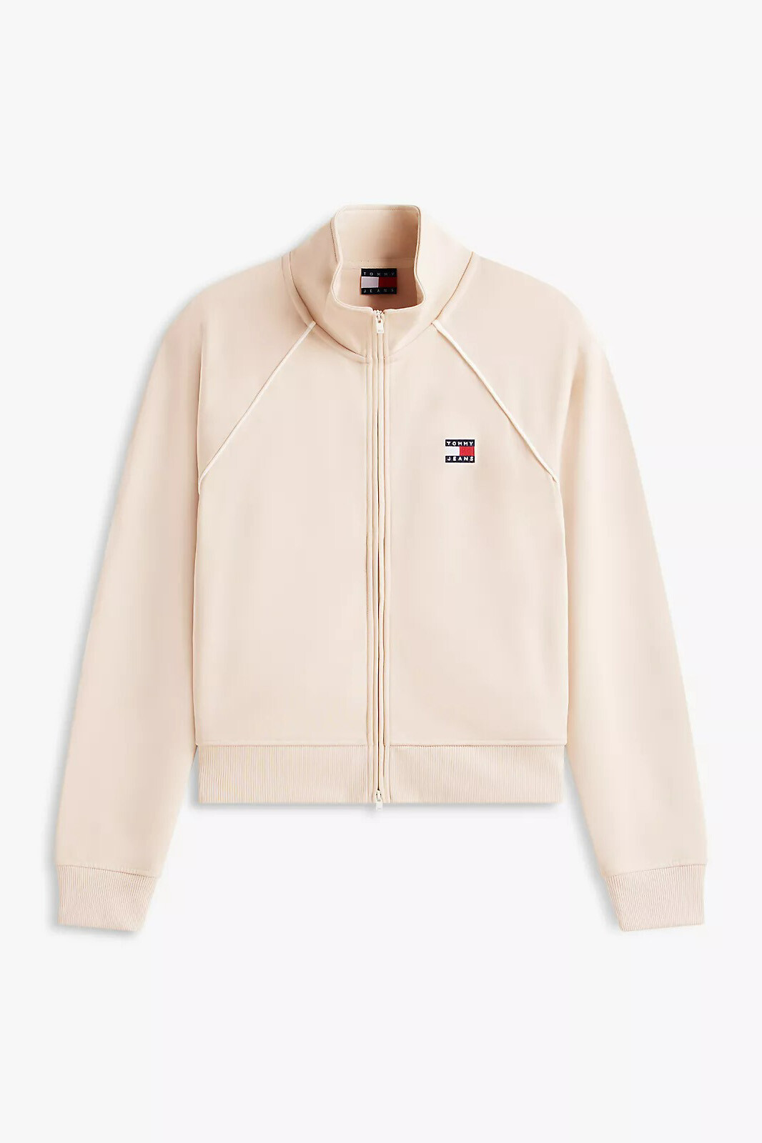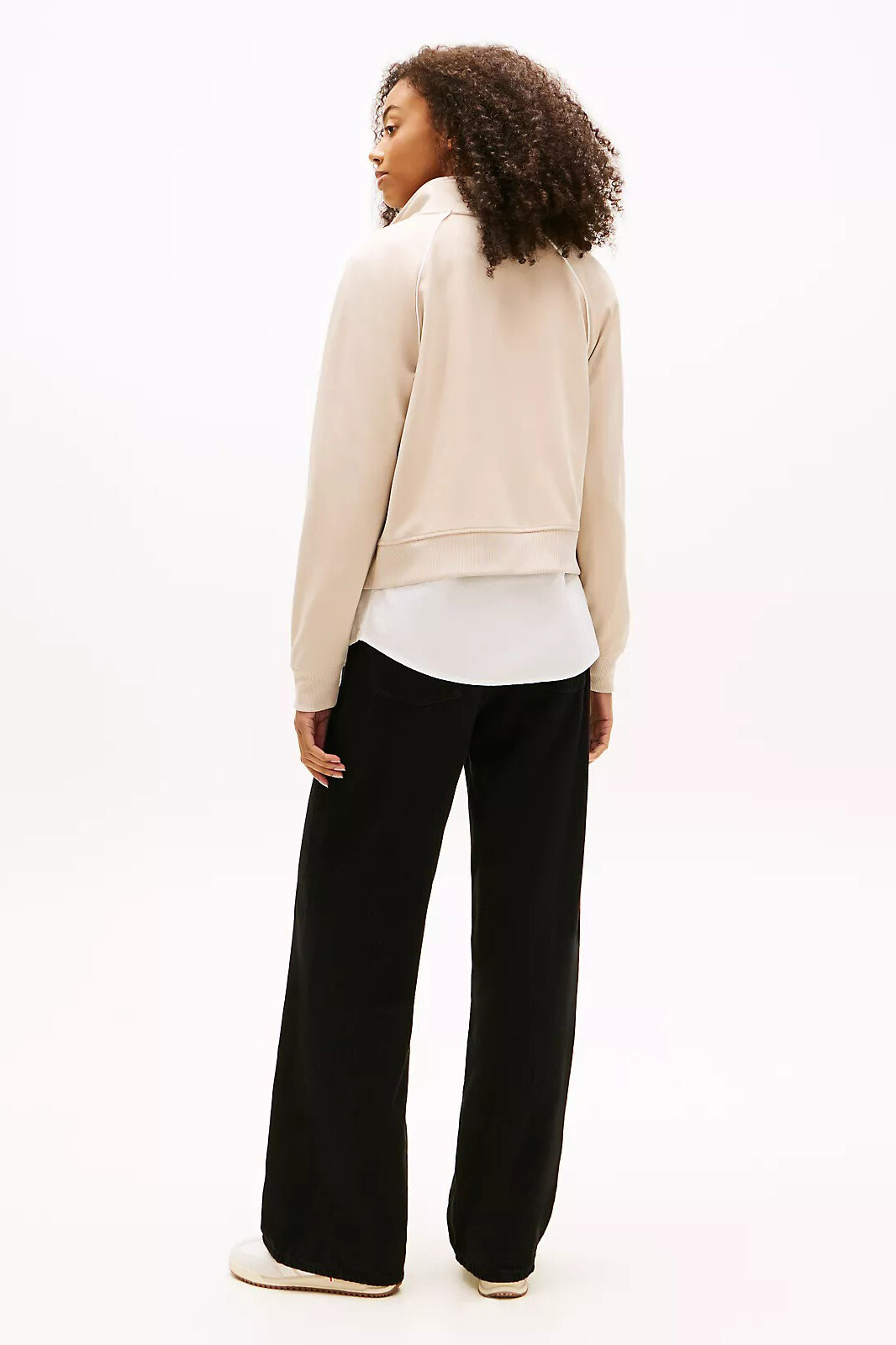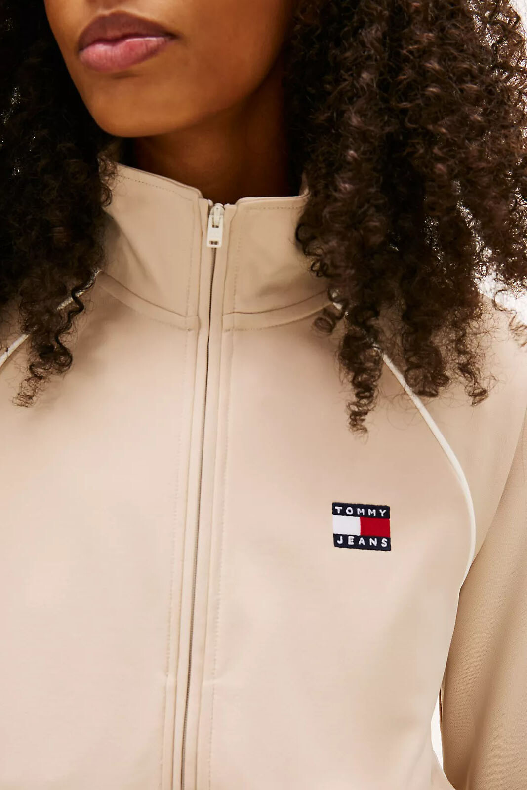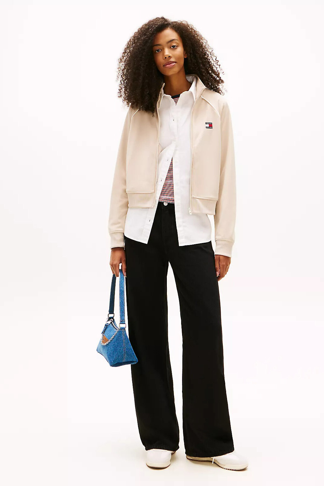 Omuz hatlarını vurgulayan kontrast biye detayları ve bele oturan modern kesimiyle silüetinize anında dinamik ve enerjik bir hava katan bu ceket, retro spor giyim estetiğini şehir şıklığına dönüştürür. %89 polyester ve %11 elastan karışımlı pürüzsüz dokusu, hareket özgürlüğü sağlarken dik yaka tasarımı ve tam boy fermuarı serin havalarda fonksiyonel bir koruma sunar. Reglan kol kesimiyle sportif duruşu destekleyen tasarım, sol göğüsteki minimal arma detayıyla stilinize özgün bir dokunuş ekler. Bel hizasında biten modern crop boyu, yüksek belli parçalarla birleştiğinde bacak boyunu uzun gösteren dengeli ve çekici bir görünüm yaratır.
