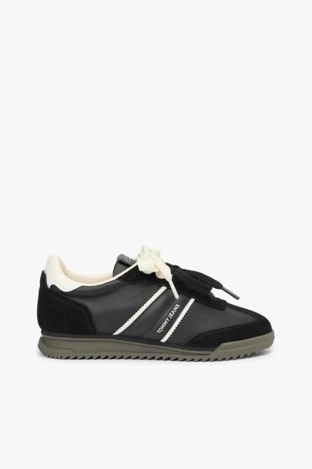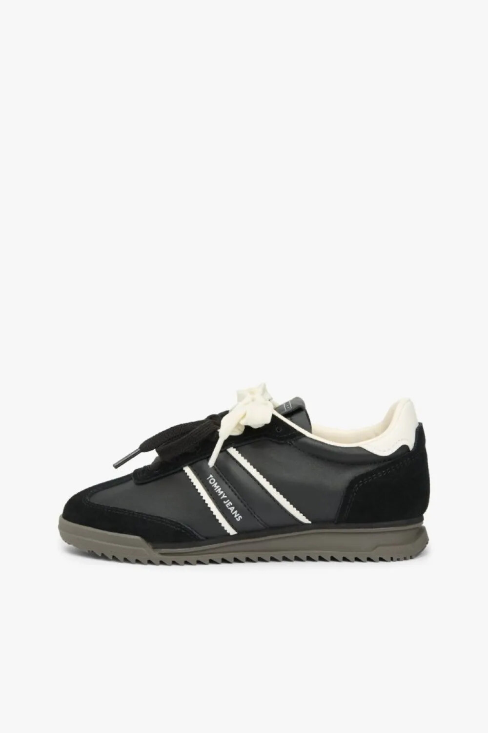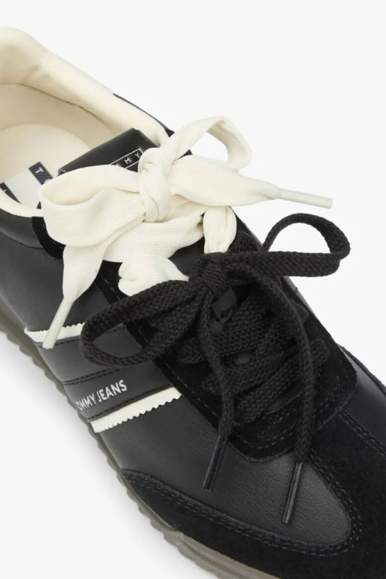 Retro koşu ayakkabılarının zarif silüetinden ilham alan bu siyah sneaker, modern sokak stiliyle klasik dokunuşları bir araya getiriyor. %100 sığır süet derisi kullanılarak üretilen üst yüzeyi, yumuşak dokusu ve premium kalitesiyle fark yaratır. Siyahın asaletini, yan kısımdaki şeritler, topuk detayı ve dikkat çekici kalın bağcıklarındaki beyaz kontrast ile hareketlendirerek dinamik bir görünüm sunar. İnce ve tırtıklı taban yapısı zemine sağlam basmanızı sağlarken, "Low Profile" kesimi sayesinde ayağınızda zarif ve hafif bir his bırakır. Günlük kombinlerinize sportif bir şıklık katmak için ideal bir tercihtir.