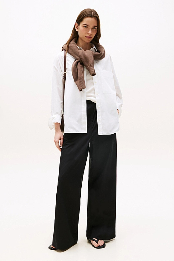 Konfor ve modern şıklığı bir araya getiren bu pantolon, gardırobunuzun en rahat ve stil sahibi parçalarından biri olacak. Hafif ve nefes alan %100 pamuklu poplin kumaşı, gün boyu ferah bir his sunar. Tamamen lastikli bel bandı, giyim kolaylığı ve mükemmel bir uyum sağlarken, geniş paça kesimi özgürce hareket etmenize olanak tanır. Minimalist tasarımı sayesinde hem basic t-shirt'lerle hem de şık bluzlarla zahmetsizce kombinleyebilirsiniz.