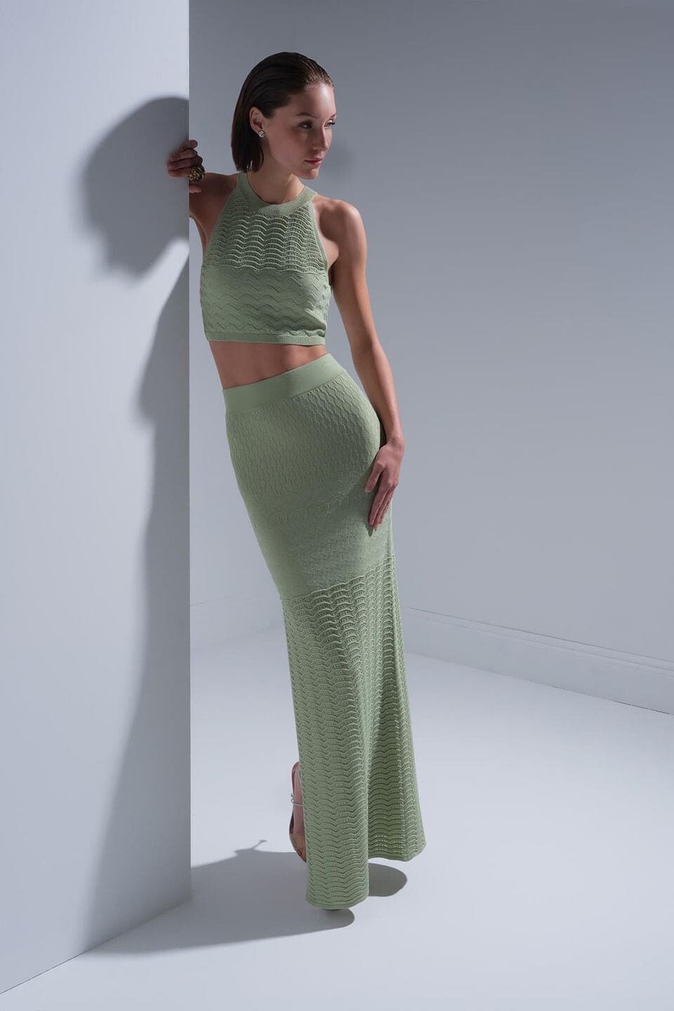 Kadın Beli Lastikli Maxi Etek - Yeşil