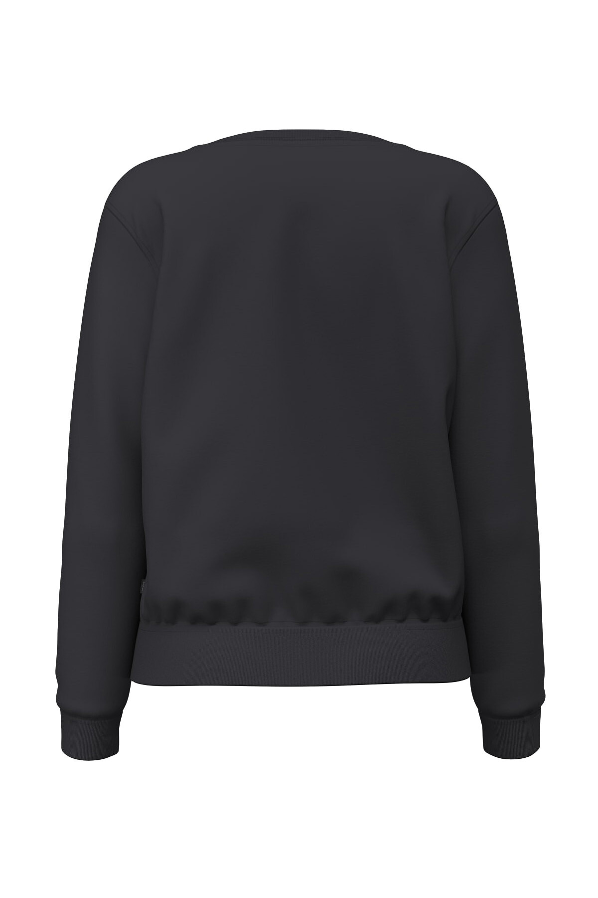 Siyah zeminini, göğüs kısmındaki kontrast beyaz yazı detayıyla canlandıran bu sweatshirt, minimalist sokak stilinin anahtar parçalarından biri. %100 pamuk ipliğinden üretilen doğal kumaşı, cildinize nefes aldırırken yumuşak dokusuyla gün boyu üstün bir konfor sunuyor. Bisiklet yaka kesimi, ribanalı etek ucu ve manşet detaylarıyla klasik sweatshirt formunu koruyan tasarım; vücuda dengeli bir şekilde oturan rahat bir silüet vadediyor. Ön yüzdeki yazı, siyah üzerine beyazın netliğiyle sade ama iddialı bir duruş sergiliyor.