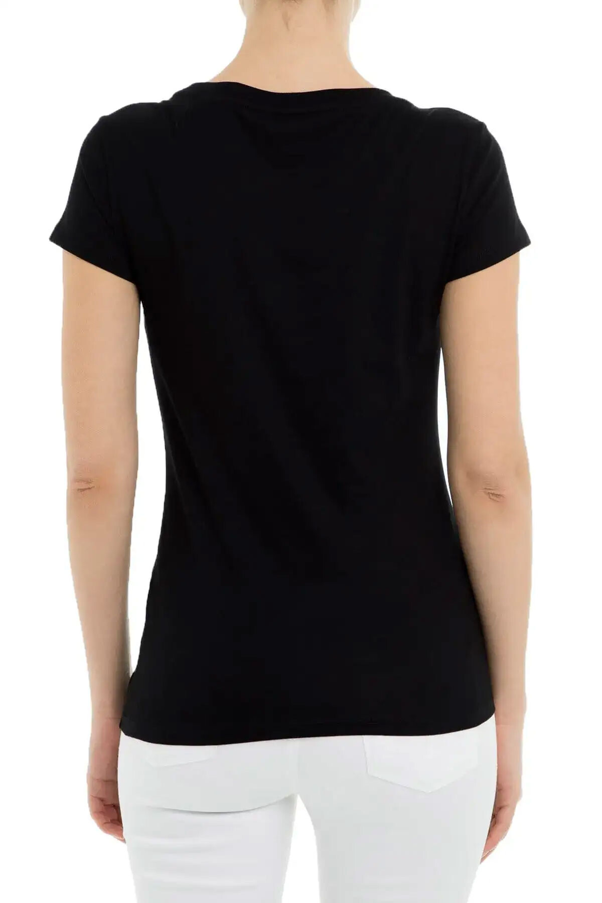 Kadın Bisiklet Yaka T-Shirt - Siyah