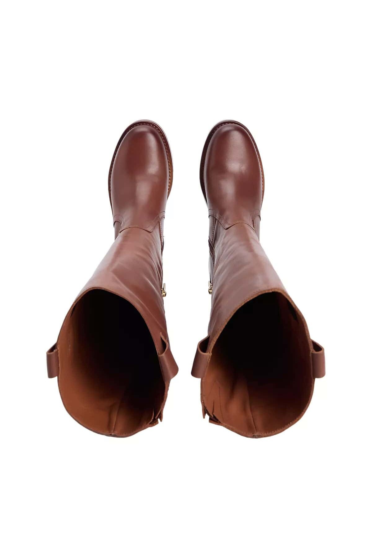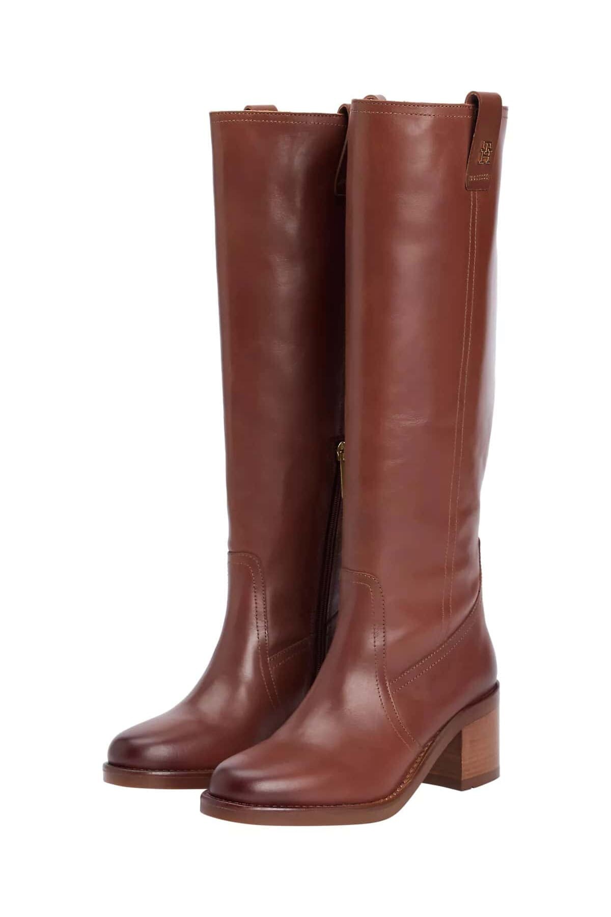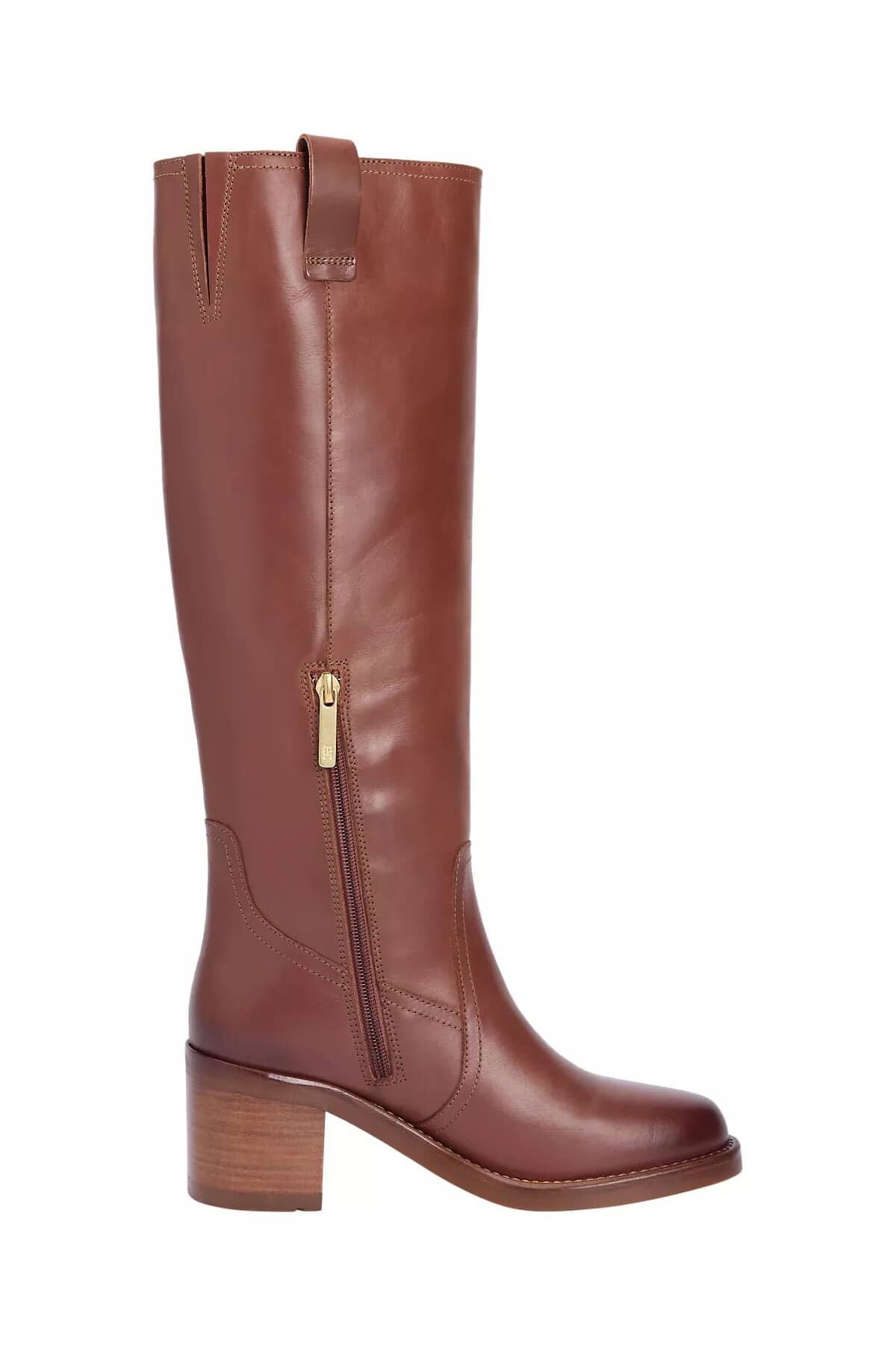Kadın Blok Topuklu Uzun Binici Çizmesi - Taba
