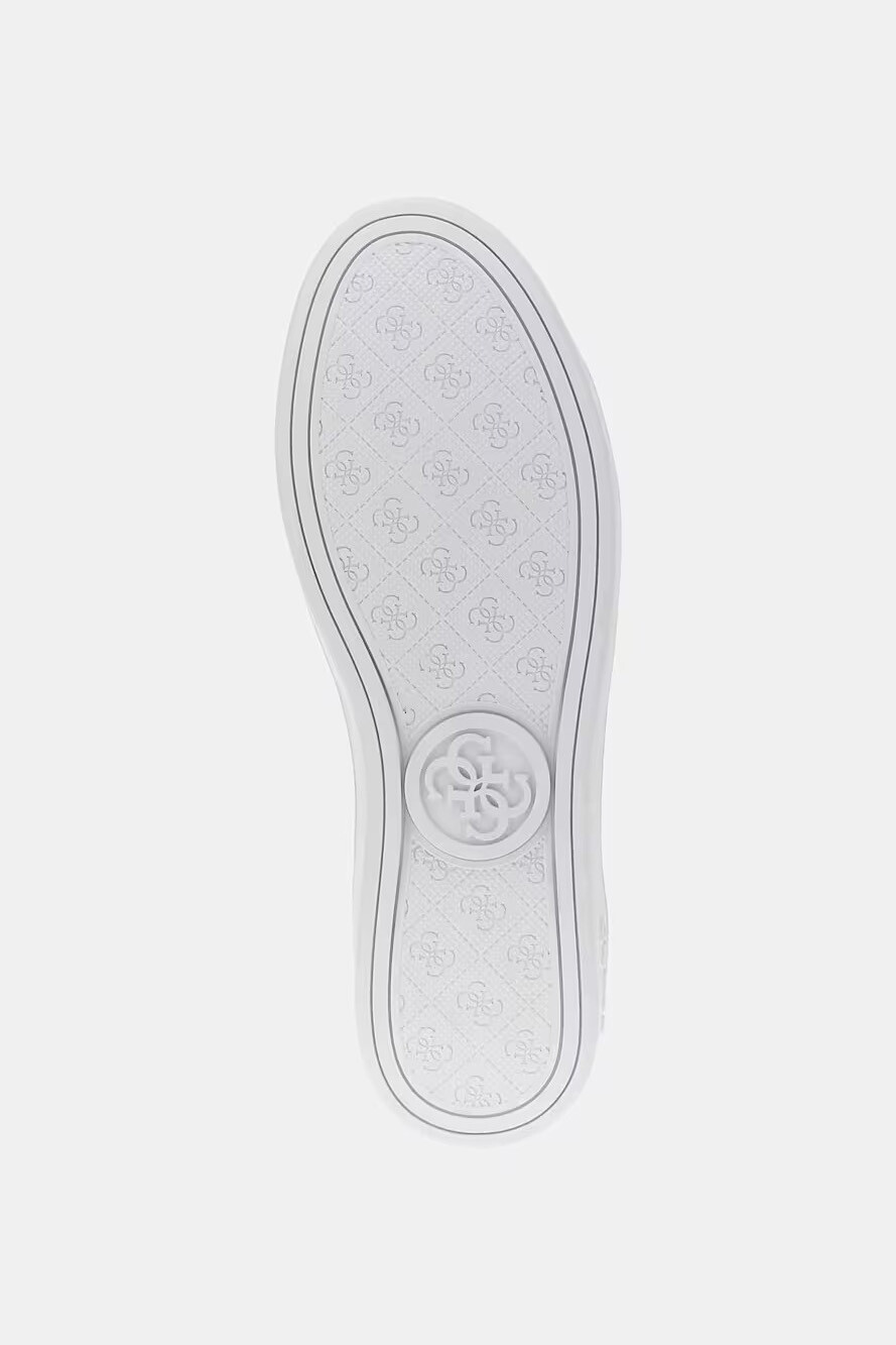Detay: Topukta kahverengi monogram panel ve yan üçgen logo
