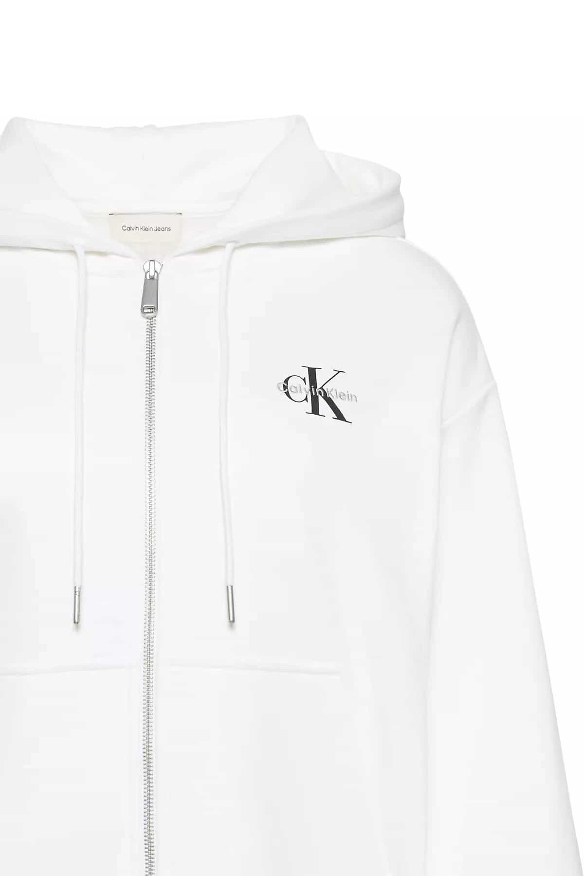 Rahatlığı ve modern bir silüeti bir araya getiren bu fermuarlı kapüşonlu sweatshirt, günlük stilinizin en konforlu parçası olacak. Pamuk ve polyester karışımlı yumuşak 'French Terry' kumaşı, gün boyu konfor sunarken, dökümlü ve rahat 'boyfriend' kalıbı modern bir görünüm sağlar. Tam boy fermuarı sayesinde katmanlı kombinler için ideal olan bu model, göğsündeki monogram nakışıyla sade bir şıklık sunar.