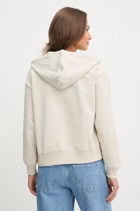 Kadın Boyfriend Fit Kapüşonlu Fermuarlı Sweatshirt - Krem