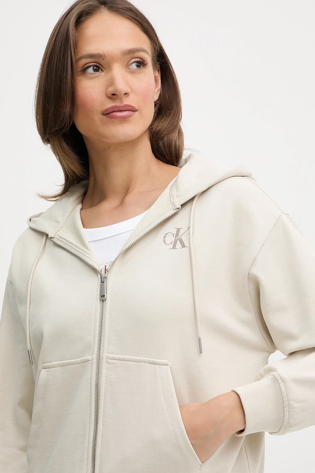 Rahatlığı ve modern bir silüeti bir araya getiren bu fermuarlı kapüşonlu sweatshirt, günlük stilinizin en konforlu parçası olacak. Pamuk ve polyester karışımlı yumuşak 'French Terry' kumaşı, gün boyu konfor sunarken, dökümlü ve rahat 'boyfriend' kalıbı modern bir görünüm sağlar. Tam boy fermuarı sayesinde katmanlı kombinler için ideal olan bu model, göğsündeki kendi rengindeki (tonal) monogram nakışıyla sade bir şıklık sunar.