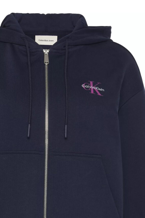 Rahatlığı ve modern bir silüeti bir araya getiren bu fermuarlı kapüşonlu sweatshirt, günlük stilinizin en konforlu parçası olacak. Pamuk ve polyester karışımlı yumuşak 'French Terry' kumaşı, gün boyu konfor sunarken, dökümlü ve rahat 'boyfriend' kalıbı modern bir görünüm sağlar. Tam boy fermuarı sayesinde katmanlı kombinler için ideal olan bu model, göğsündeki kontrast renkli monogram nakışıyla sade bir şıklık sunar.
