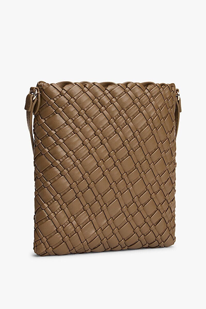 Kahverenginin doğal ve sıcak tonlarıyla tasarlanan bu Braided Crossover çanta, bohem şıklığı şehir hayatının modern çizgileriyle buluşturuyor. Çantanın tüm yüzeyini kaplayan karakteristik örgü dokusu, tasarıma el işçiliği zarafeti ve derinlik katarken; iç kısımdaki büzgülü tekstil astar, eşyalarınız için güvenli ve pratik bir kullanım alanı sunar. İnce yapılı uzun askısı sayesinde omzunuzda veya çapraz olarak rahatça taşıyabileceğiniz bu kompakt model, ön yüzdeki gold renkli metal logo detayıyla tamamlanarak stilinize ışıltılı ve sofistike bir dokunuş ekliyor.