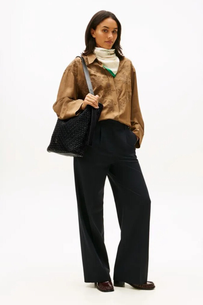 Siyahın zamansız ve asil duruşunu bohem bir dokunuşla yeniden yorumlayan bu Braided Maxi Hobo, şehirli kadının gardırobundaki en işlevsel parçalardan biri olmaya aday. Çantanın tamamını saran detaylı örgü dokusu, geniş hobo silüetine sofistike bir derinlik ve hareket kazandırıyor. 40 cm'lik genişliği ve 16.8 litrelik cömert iç hacmi ile alışverişten ofise, hafta sonu gezmelerinden brunch davetlerine kadar ihtiyacınız olan her şeyi yanınızda taşımanız için mükemmel bir alan sunar. Büzgülü ağız yapısı, çantaya yumuşak ve rahat bir form verirken eşyalarınızı güvenle saklamanızı sağlar. Ayarlanabilir omuz askısı ve ön kısımdaki ikonik gold renkli "TH" logosu ile tamamlanan tasarım, fonksiyonelliği zarafetle buluşturuyor.