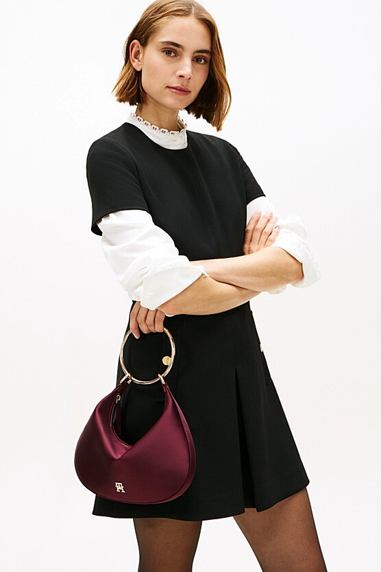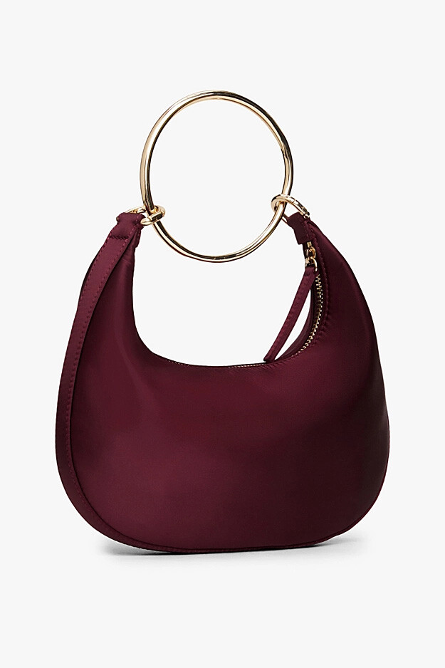 "Marzemino" bordosunun derin ve asil şarap tonuyla tasarlanan bu Bright Bracelet Hobo çanta, saten dokusunun pürüzsüz parlaklığıyla gece kombinlerinize sofistike bir dokunuş katıyor. Tasarımın imza niteliğindeki altın renkli büyük metal halka sapı, çantayı sadece bir taşıma aracı olmaktan çıkarıp bilekte taşınan şık bir mücevher görünümüne kavuşturuyor. Yumuşak kavisli hobo formu ve fermuarlı güvenli yapısı, gece boyu ihtiyaç duyacağınız temel eşyalarınızı saklarken; çıkarılabilir omuz askısı sayesinde dilediğinizde ellerinizi serbest bırakarak modern bir kullanım sunar. Özel davetler ve şık akşam yemekleri için zarafeti fonksiyonellikle buluşturan eşsiz bir aksesuar.