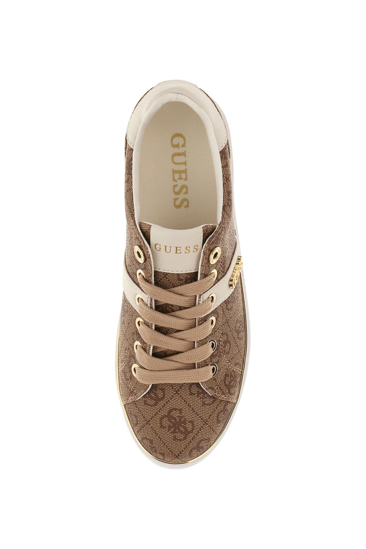 Klasik kort sneaker silüetine zarif bir yorum getiren bu model, zamansız bir şıklık sunar. Baştan sona monogram deseniyle kaplı bej yüzey, krem rengi paneller ve tabanı çevreleyen ince altın rengi şerit gibi lüks detaylarla hareket kazanır. Yan paneldeki metalik yazı detayı ve parlak bağcık delikleri, ayakkabının sofistike karakterini vurgular. Düz ve konforlu tabanı, bu sneaker'ı her türlü günlük kombin için ideal bir tamamlayıcı yapar.