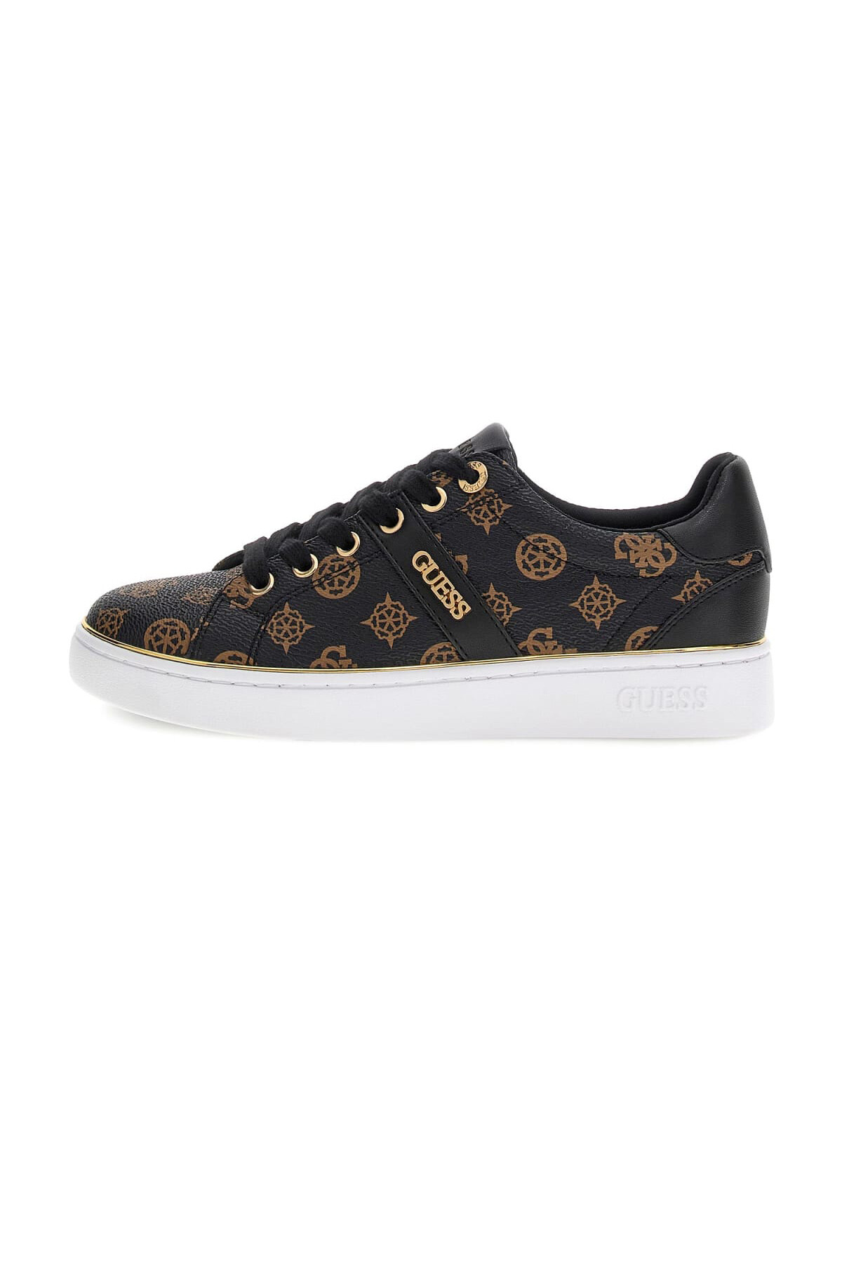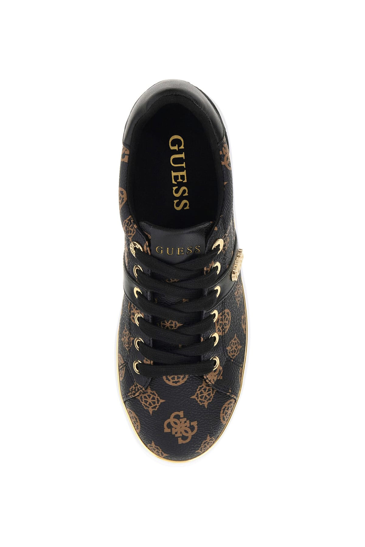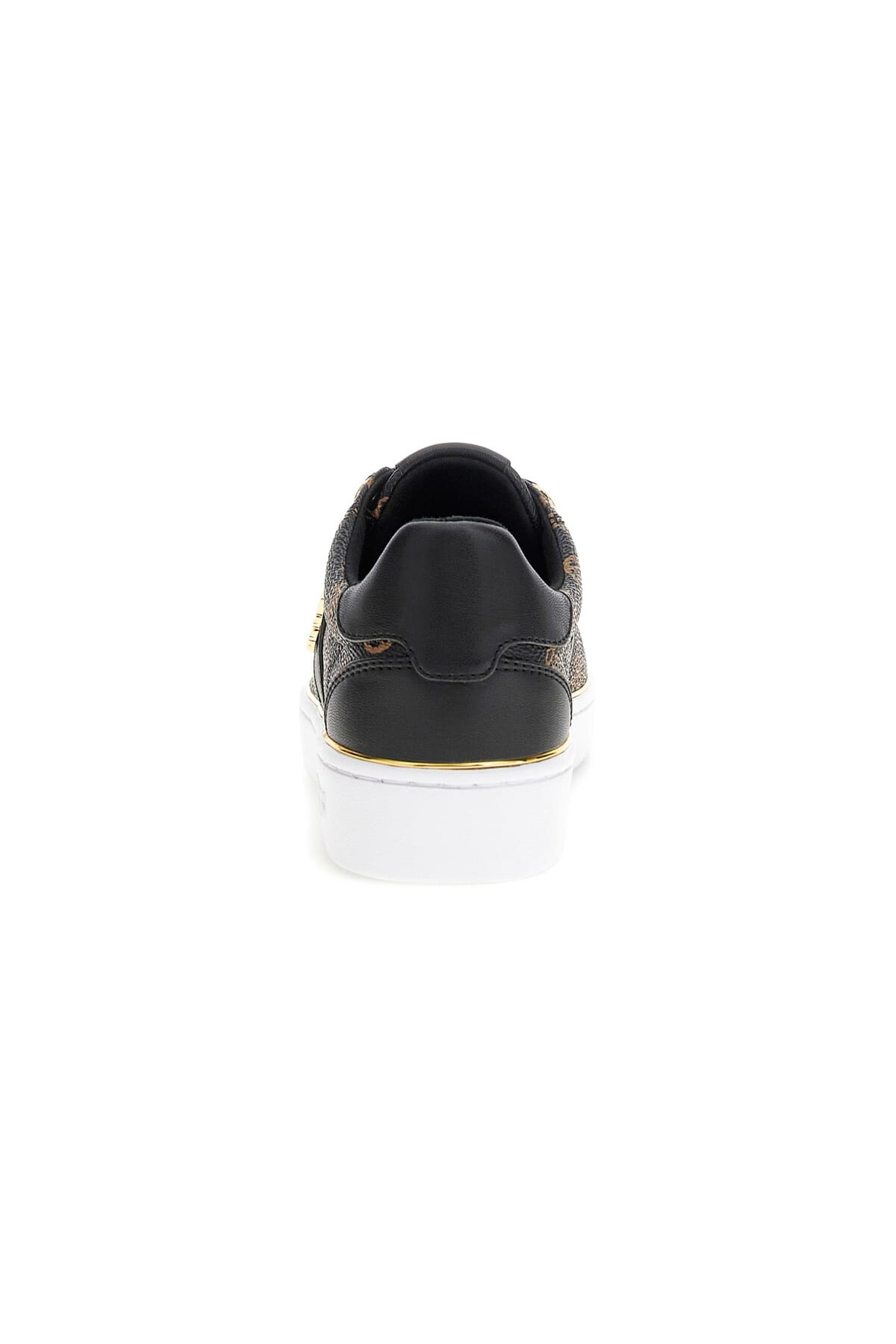 Klasik kort sneaker silüetine zarif bir yorum getiren bu model, zamansız bir şıklık sunar. Baştan sona monogram deseniyle kaplı kahverengi yüzey, siyah paneller ve tabanı çevreleyen ince altın rengi şerit gibi lüks detaylarla hareket kazanır. Yan paneldeki metalik yazı detayı ve parlak bağcık delikleri, ayakkabının sofistike karakterini vurgular. Düz ve konforlu tabanı, bu sneaker'ı her türlü günlük kombin için ideal bir tamamlayıcı yapar.