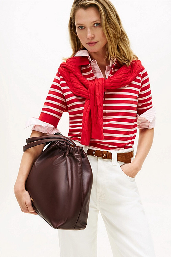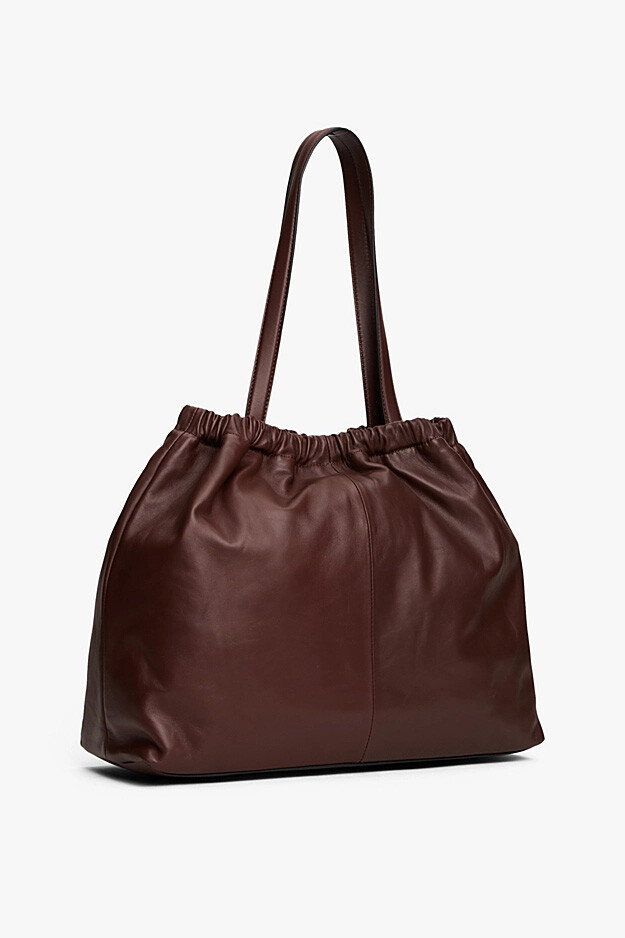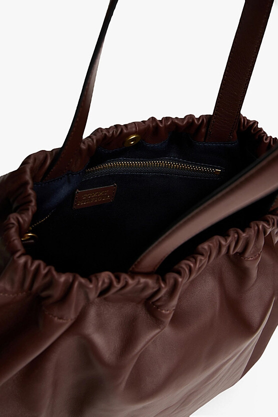 Lüks napa derinin ipeksi yumuşaklığı ile tasarlanan bu tote çanta, geniş iç hacmi ve sofistike detaylarıyla stilinize değer katıyor. Ağız kısmında yer alan zarif büzgü detayları, çantanın modern formuna feminen bir dokunuş eklerken, pürüzsüz deri yüzeyi kalitesini her açıdan yansıtıyor. 16 litrelik cömert kapasitesi, günlük kişisel eşyalarınızdan iş gereçlerinize kadar ihtiyacınız olan her şeyi düzenli bir şekilde taşımanız için ideal bir alan sunar. Uzun omuz askıları sayesinde palto veya ceketlerle bile konforla kullanabileceğiniz bu tasarım, zamansız şıklığı fonksiyonellikle buluşturuyor.