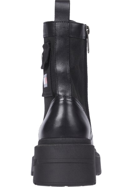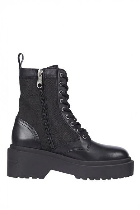 Kadın Chunky Combat Deri Bot - Siyah