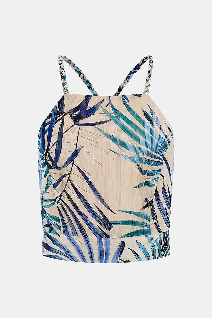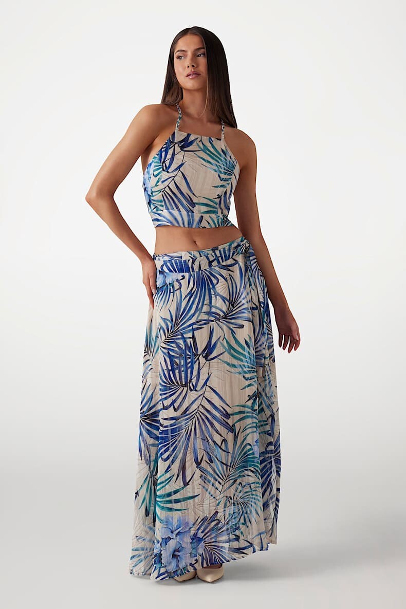 Kadın Çiçek Desenli Crop - Mavi