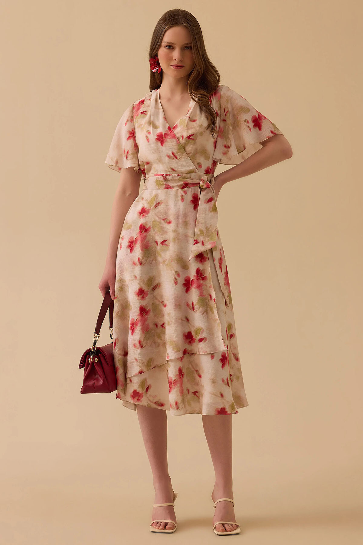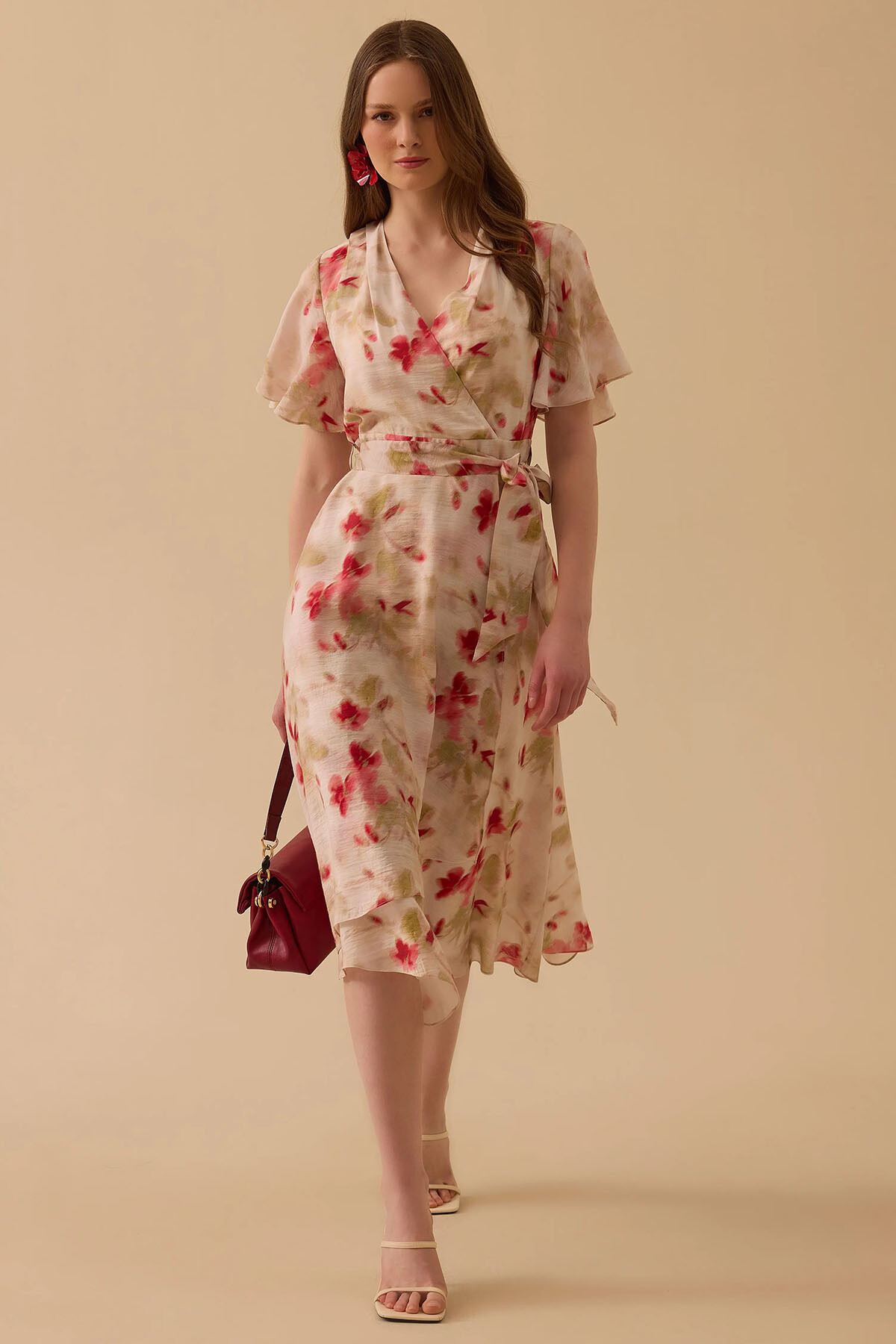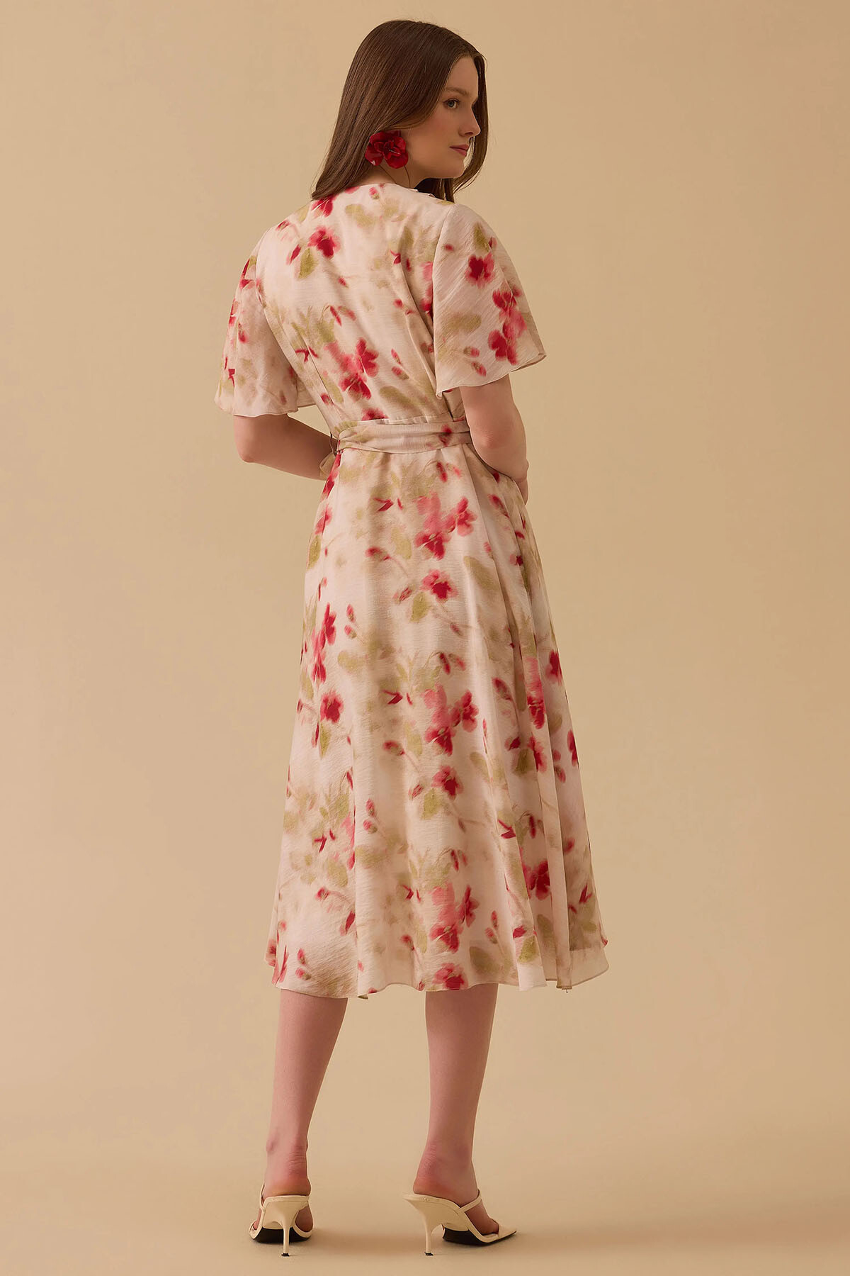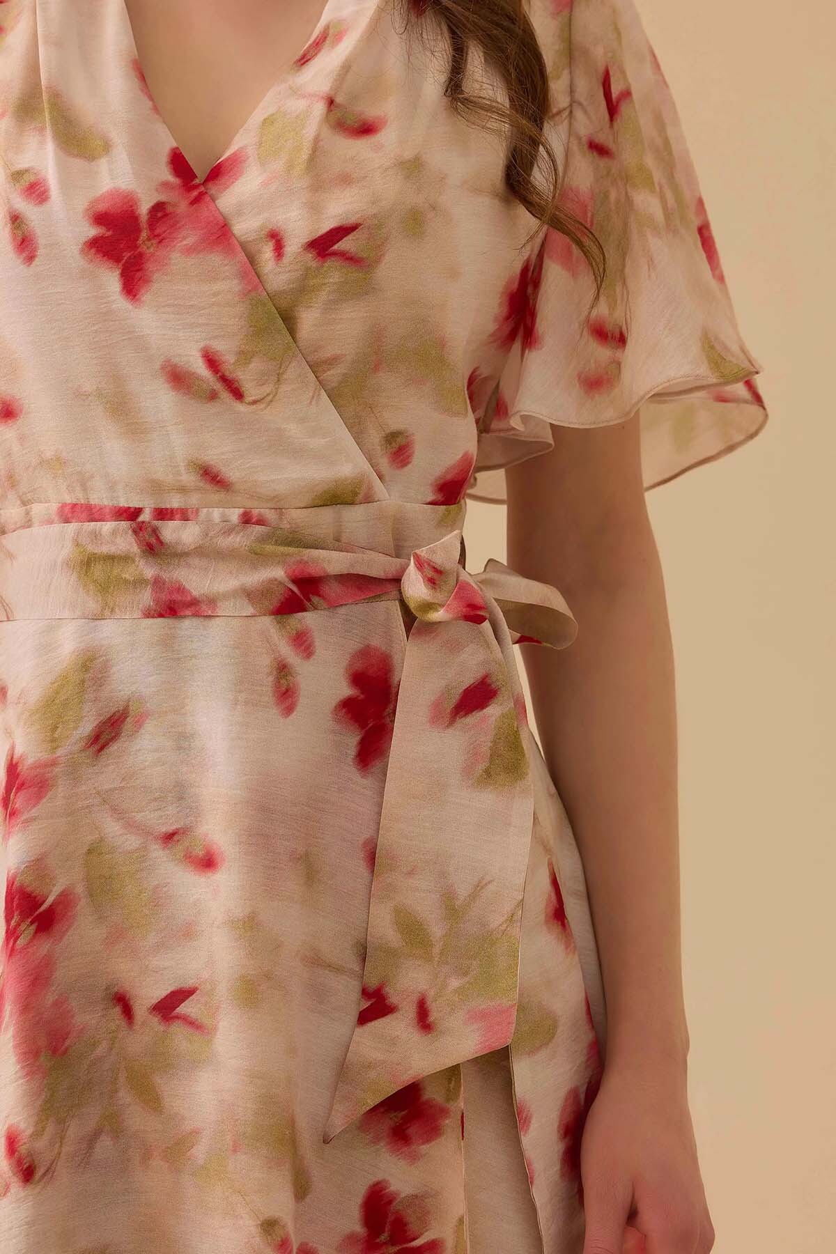 Viskoz ağırlıklı kaliteli dokusu sayesinde ipeksi bir yumuşaklık ve ferahlık sunan bu pudra desenli elbise, astarlı yapısıyla konforlu bir kullanım sağlar. Akışkan kumaşı ve özgün deseni, her adımda size asil bir hareketlilik kazandırır.