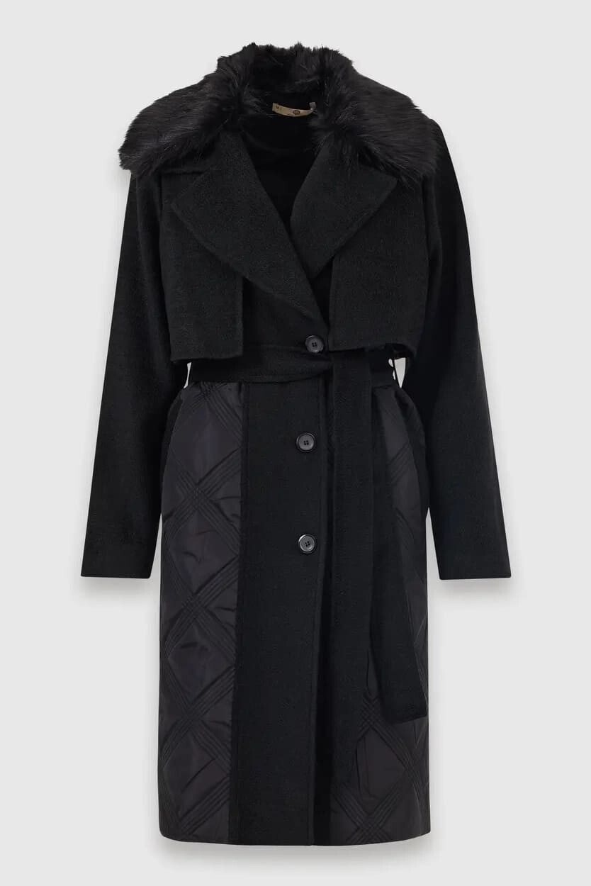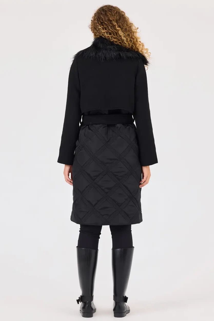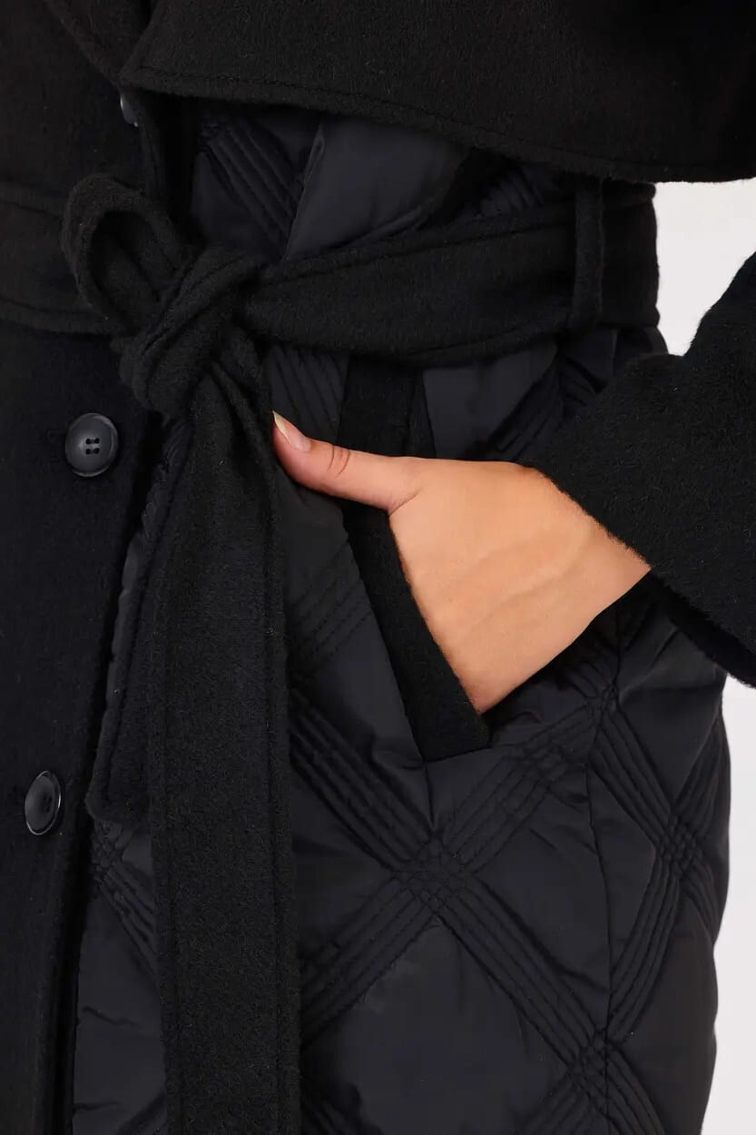 Kadın Çift Kumaşlı Kuşaklı Cep Detaylı Kaban - Siyah