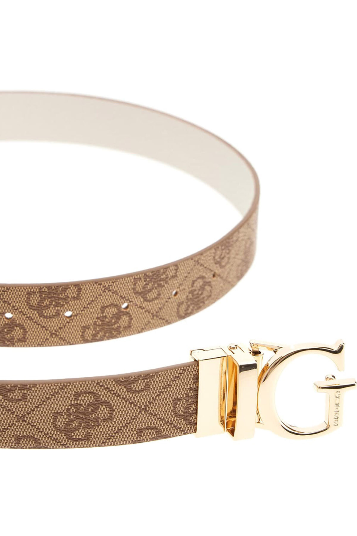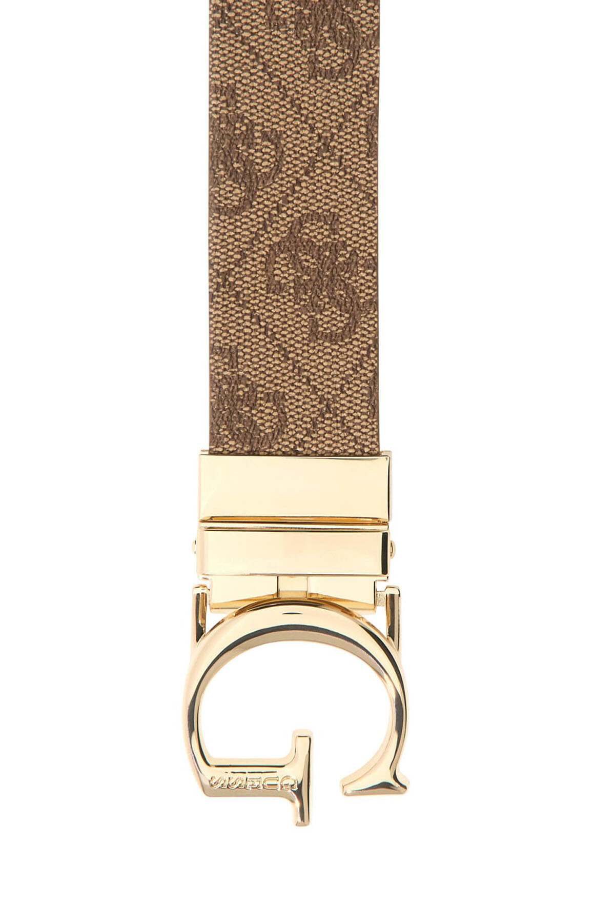 Fonksiyonelliği ve göz alıcı tasarımı bir araya getiren bu kemer, gardırobunuza çok yönlülük katmak için idealdir. Çift taraflı olarak tasarlanan modelin bir yüzü markanın ikonik monogram deseniyle, diğer yüzü ise sade ve dokulu krem rengiyle öne çıkar. Parlak altın rengi metalden oluşan büyük harf formundaki döner tokası sayesinde iki stil arasında saniyeler içinde geçiş yapabilirsiniz. Bu kemer, tek bir aksesuarla iki farklı görünüm elde etme imkanı sunar.