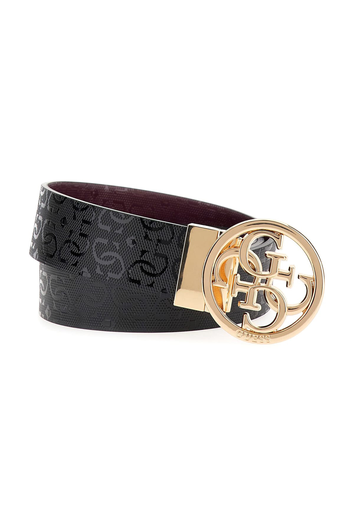 Fonksiyonelliği ve göz alıcı tasarımı bir araya getiren bu kemer, gardırobunuza çok yönlülük katmak için idealdir. Çift taraflı olarak tasarlanan modelin bir yüzü tonal monogram desenli siyah, diğer yüzü ise yine desenli ve zengin bir bordo rengiyle öne çıkar. Parlak altın rengi metalden oluşan büyük dairesel formdaki döner tokası sayesinde iki stil arasında saniyeler içinde geçiş yapabilirsiniz. Bu kemer, tek bir aksesuarla iki farklı ve sofistike görünüm elde etme imkanı sunar.