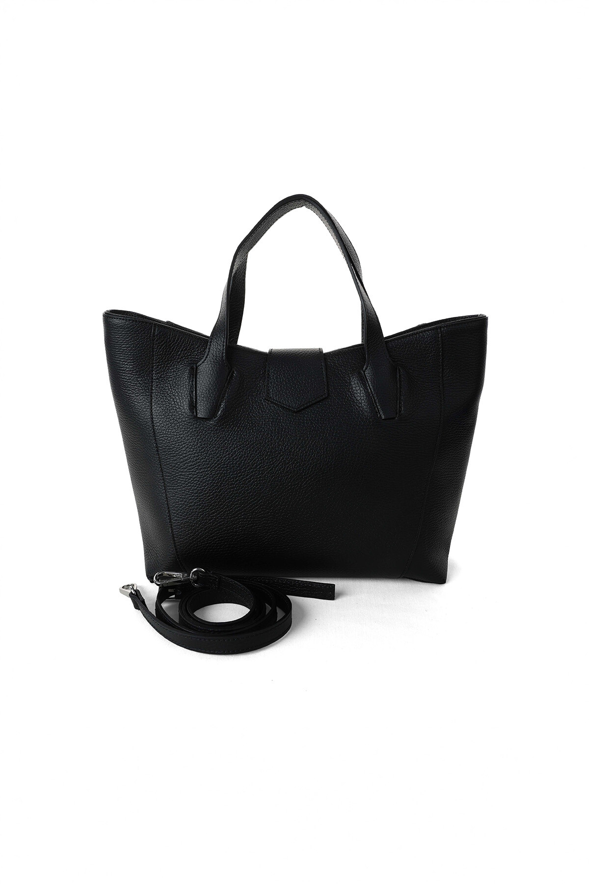 Siyahın asaletini İtalyan zarafetiyle birleştiren bu omuz çantası, zamansız tasarımıyla gardırobunuzun en güçlü parçalarından biri olmaya aday. %100 dana derisinden üretilen gövdesi, pürüzsüz ve dayanıklı dokusuyla lüks bir kullanım deneyimi sunarken, iç kısımdaki rip-stop naylon astarı eşyalarınızı güvenle korur. Çantanın ön yüzünde dikey olarak konumlandırılan deri şerit ve üzerindeki metal harf aksesuarları, minimalist tasarıma modern bir ışıltı katar. Geniş ağızlı ve trapez formlu yapısı sayesinde günlük ihtiyaçlarınız için geniş bir saklama alanı sağlar. Sabit çift kısa sapı ile elde taşınabileceği gibi, 70 cm'lik uzun askı seçeneği ile omuzda da rahatlıkla kullanılabilir.