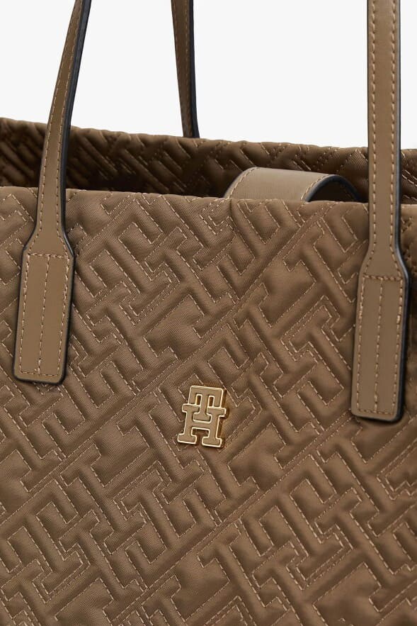 Kahverenginin sıcak ve doğal tonlarıyla tasarlanan bu City Tote, sürdürülebilir modayı şıklıkla buluşturuyor. Çantanın hafif naylon yüzeyine işlenmiş boydan boya dikişli monogram deseni, tasarıma derinlik ve kapitone benzeri lüks bir doku kazandırıyor. %91 oranında geri dönüştürülmüş malzemeden üretilen gövdesi, %9 oranındaki gerçek deri kulp ve detaylarla tamamlanarak hem hafiflik hem de dayanıklılık sunuyor. 43 cm'lik geniş iç hacmi, laptop, dosya ve günlük eşyalarınız için mükemmel bir alan sağlarken; ağız kısmındaki mıknatıslı kemer kapama sistemi pratik bir kullanım vaat ediyor. Şehir hayatının koşturmacasında stilinden ödün vermeden konfor arayanlar için ideal bir tercih.