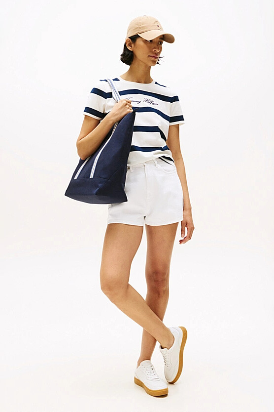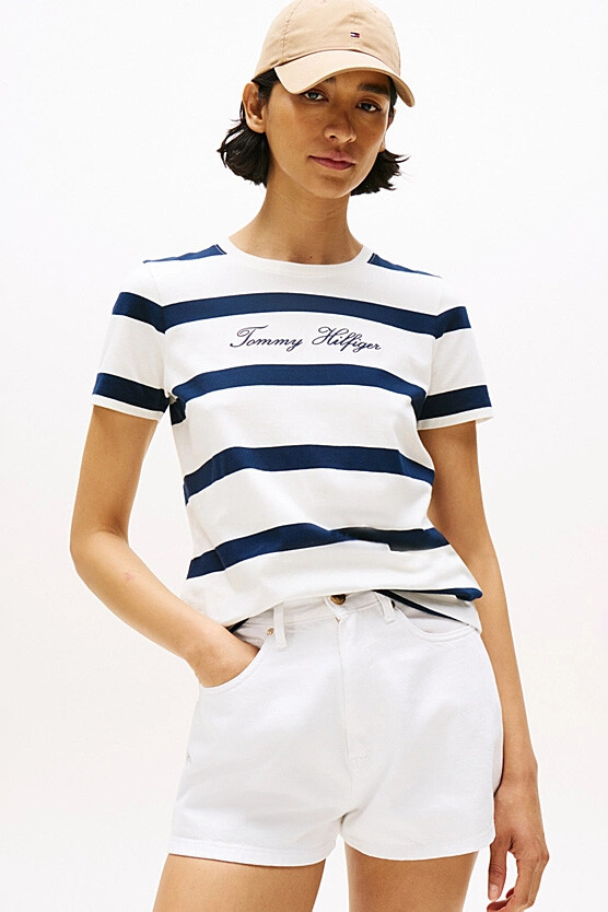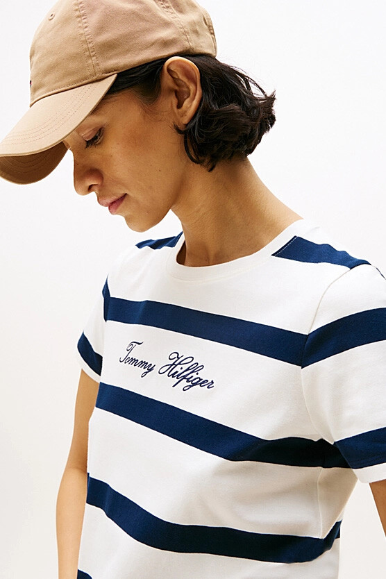 Denizci stilinin ikonik çizgileri, bu rahat t-shirt ile gardırobunuza geliyor. Nefes alan %100 pamuklu kumaşı, gün boyu maksimum konfor sunar. Geniş enine çizgiler tasarıma canlılık katarken, göğüs kısmındaki zarif yazı nakışı şık bir imza dokunuşu oluşturur. Kol ucundaki minimalist nakış logo ise tasarımdaki özeni tamamlar. Zamansız ve her zaman şık bir görünüm için ideal bir parçadır.