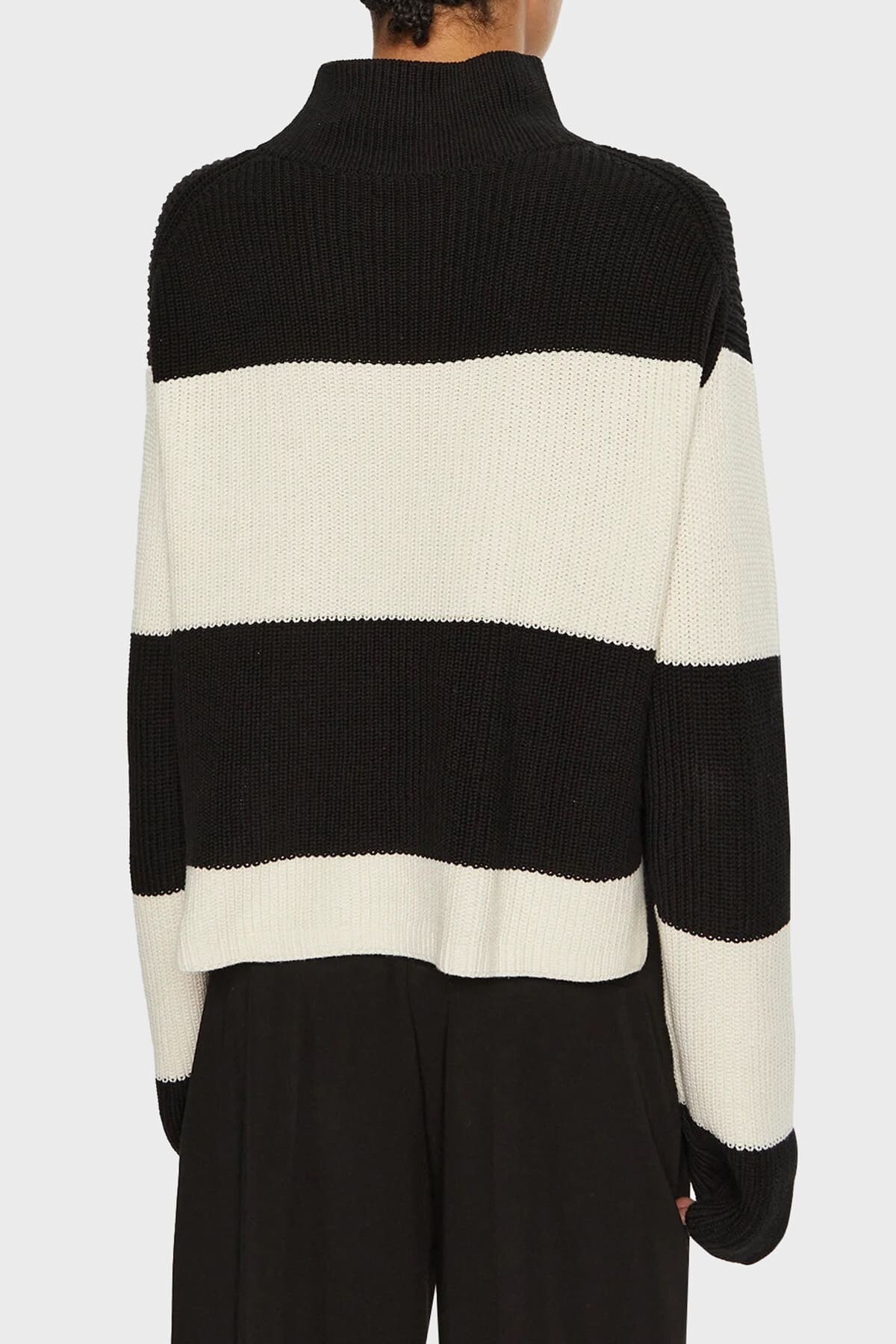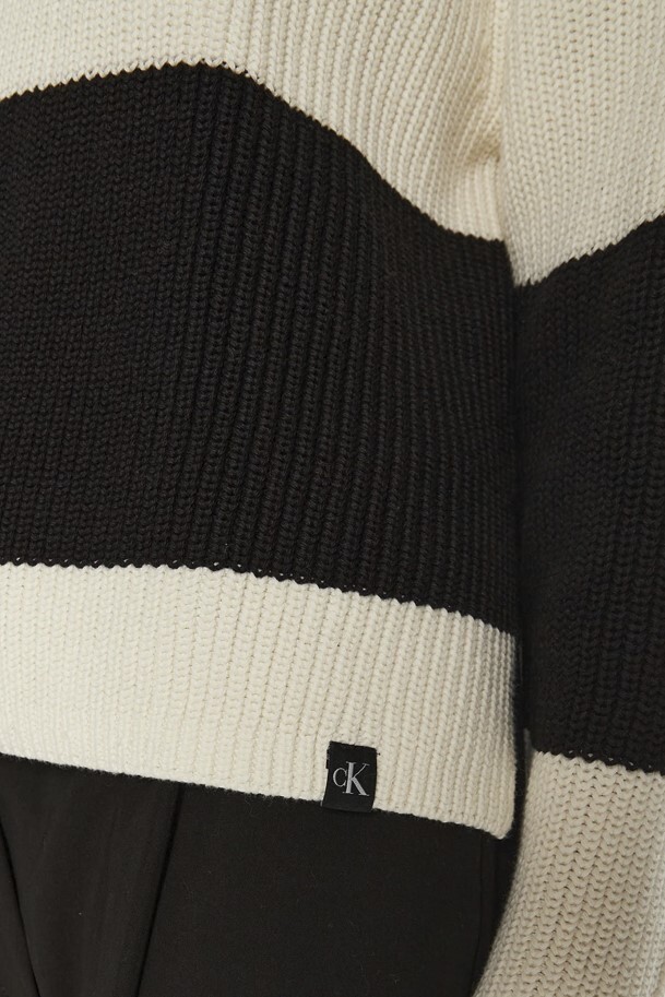 Kadın Ck Chunky Loose Boğazlı Kazak - Siyah - Beyaz