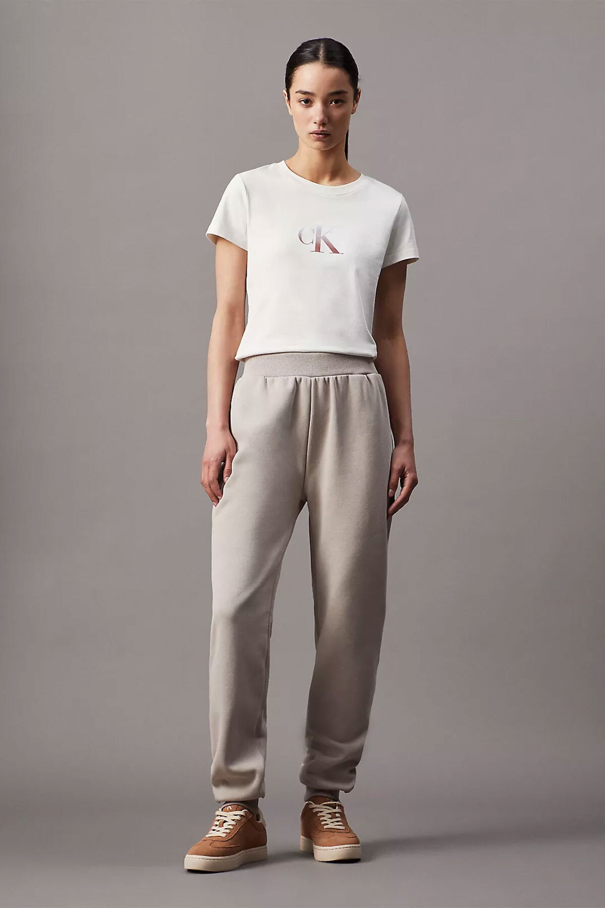 Kadın Ck Raısed Kabartma Logolu Jogger Eşofman Altı - Bej