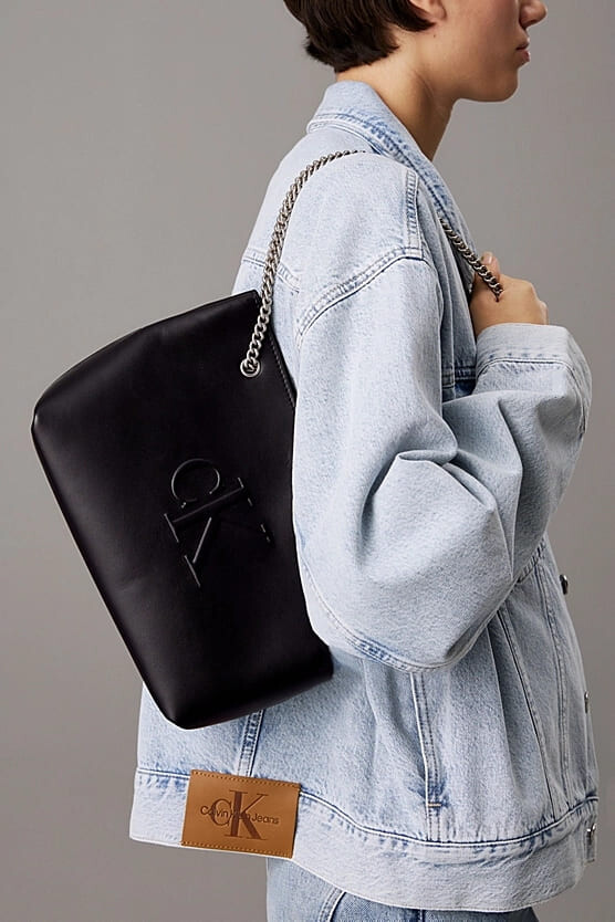 Kadın Ck Sculpted Chain El Çantası - Siyah
