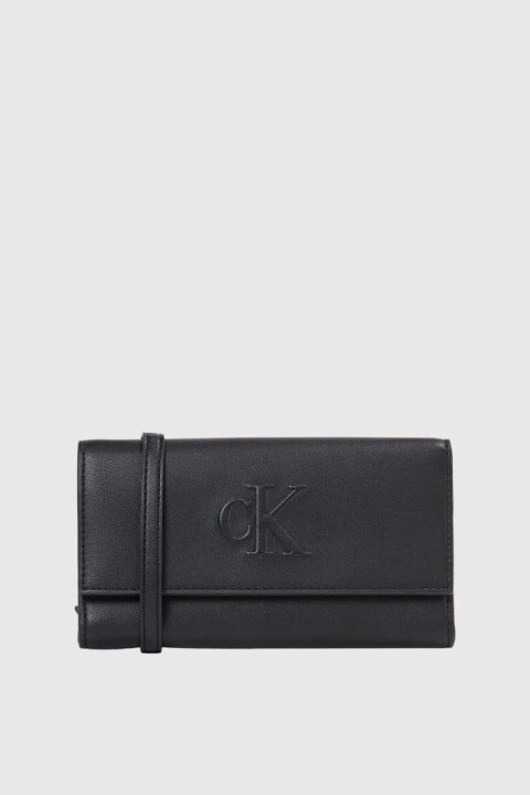 Kadın Ck Sculpted Uzun Askılı Cüzdan - Siyah