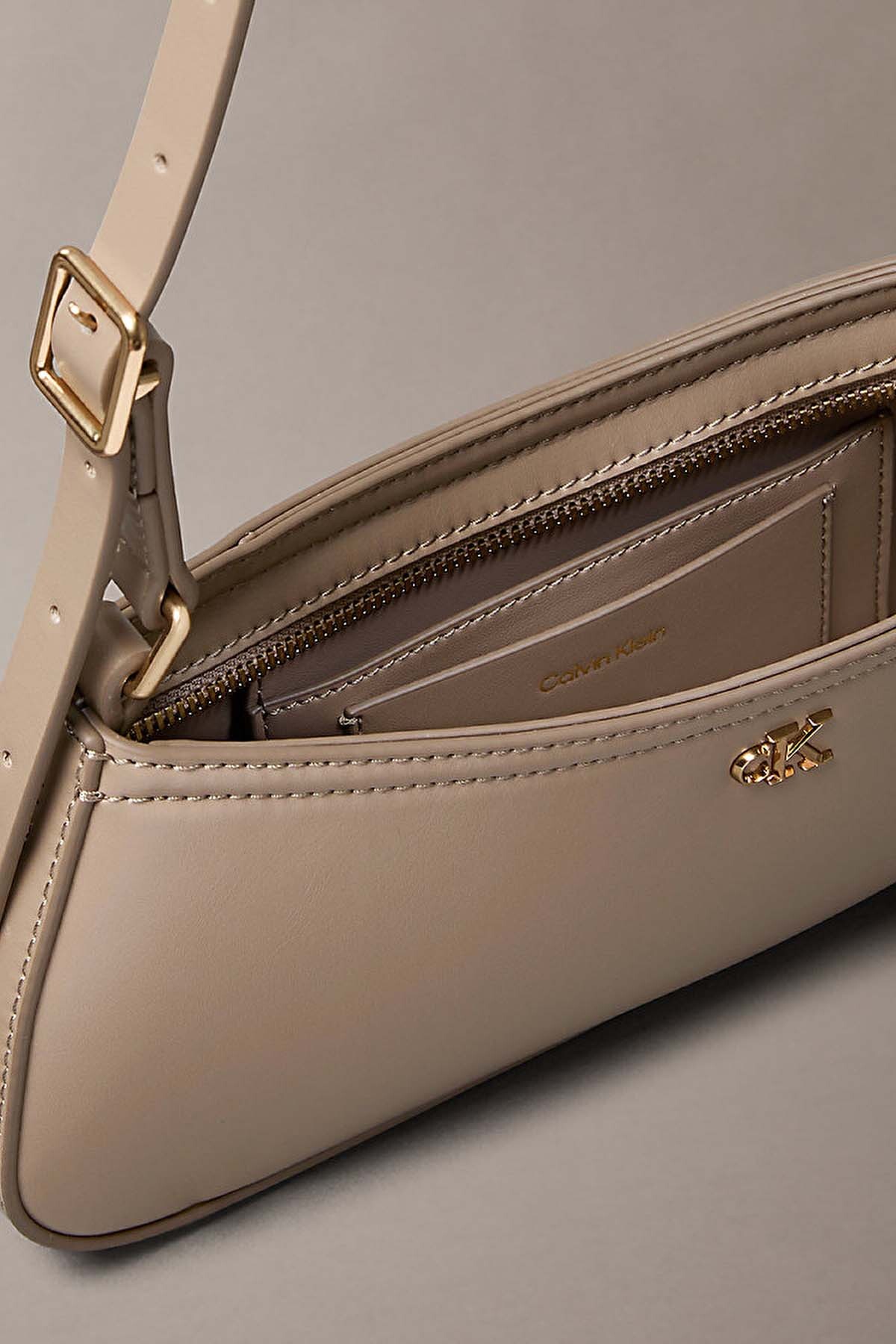 Modern ve minimalist bir estetikle tasarlanan bu omuz çantası, yapılandırılmış formuyla stilinize sofistike bir dokunuş katar. %51 polyester ve %49 poliüretan karışımından oluşan dayanıklı dış yüzeyi, pürüzsüz dokusu ve zarif bej tonuyla her mevsim ve her kombine kusursuzca uyum sağlar. Ön panelde yer alan dore renkli ikonik monogram logo plakası tasarıma lüks bir imza kazandırırken, kavisli baget silüeti güncel moda trendlerini yansıtır.