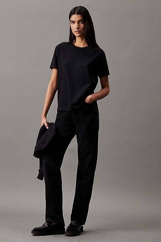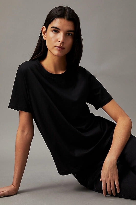 Kadın Ck Smooth Pamuklu T-Shirt - Siyah